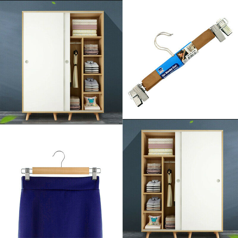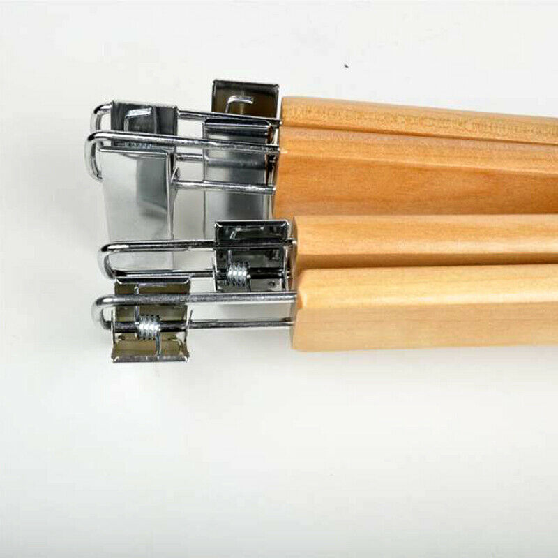 NEW WOODEN HANGERS COAT SUIT GARMENTS CLOTHES WOOD HANGER WITH CLIPS SET 10X
