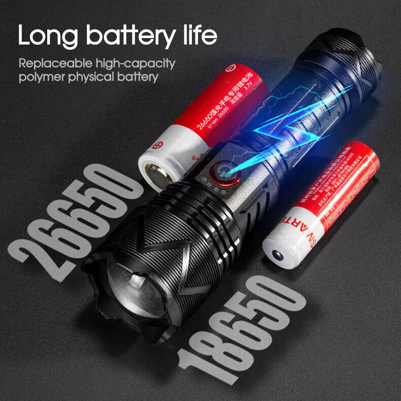 - Super bright flashlight: Highest lumens reachable up to 150000 lumens