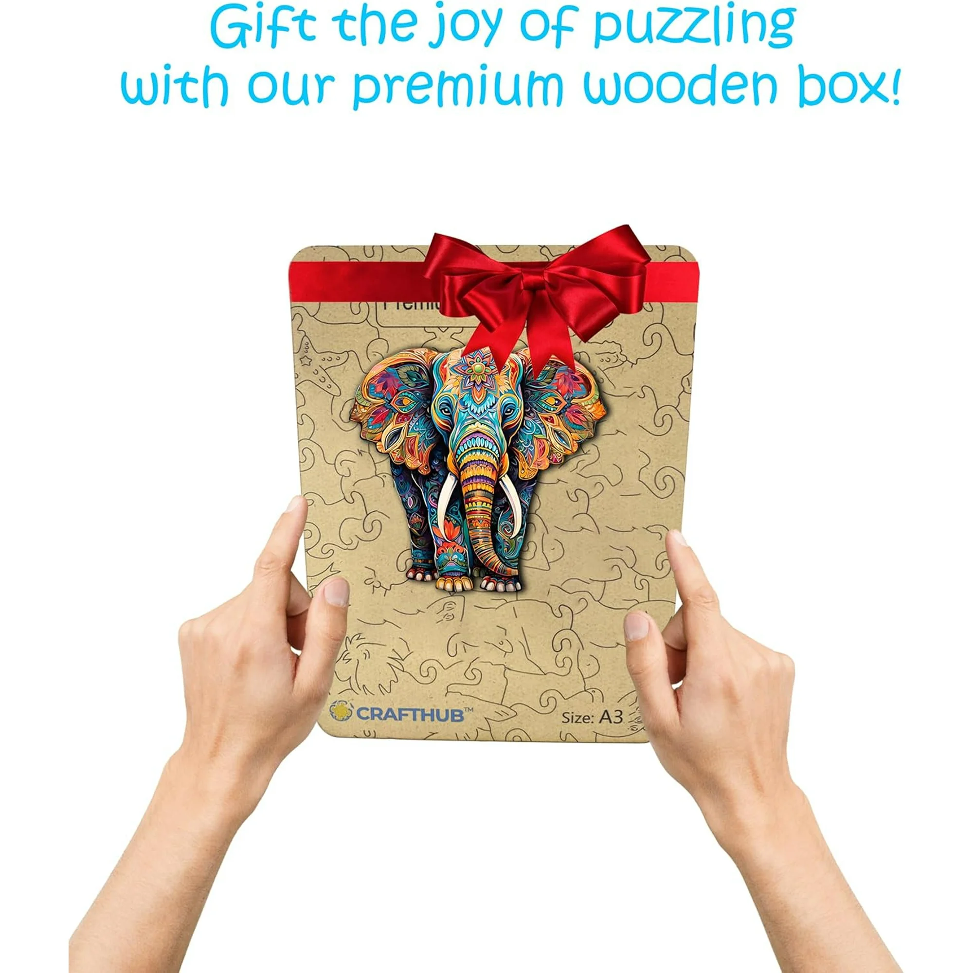 CRAFTHUB Animal Shaped Wooden Puzzles for Adults – A3 Vivid Elephant