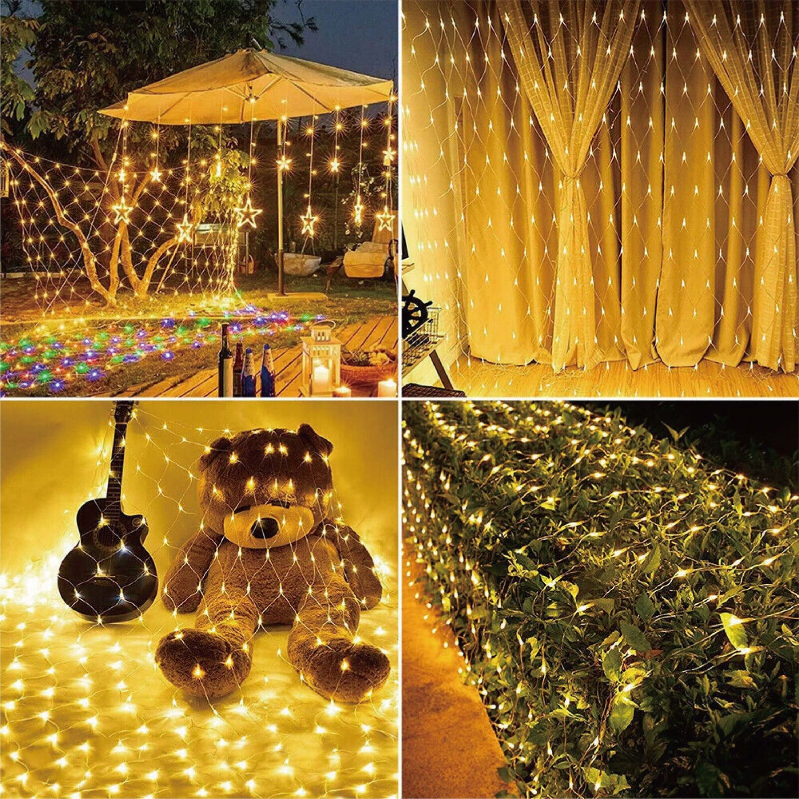 Solar LED String Fairy Lights Net Mesh Curtain Xmas Wedding Garden Outdoor