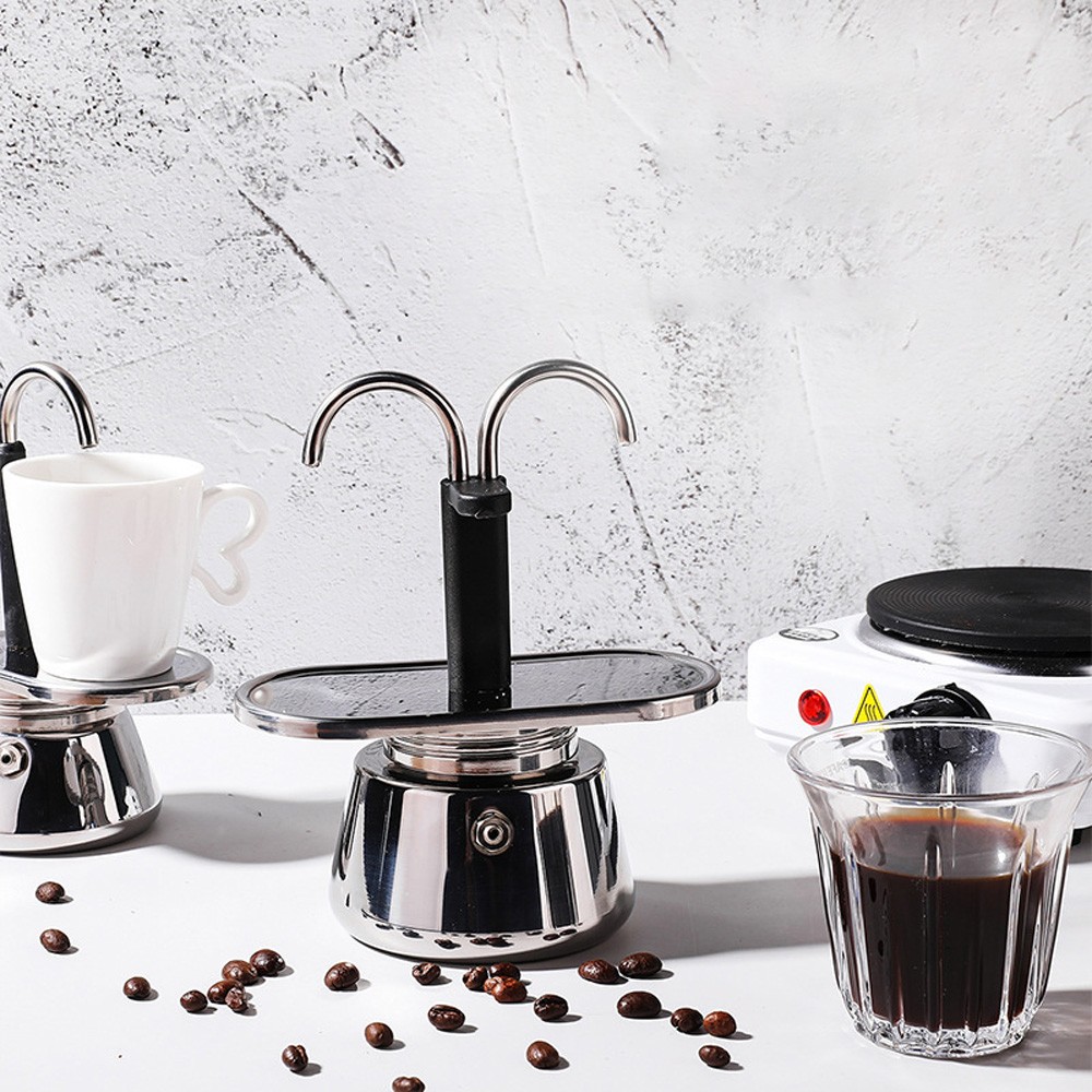304 Stainless Steel Mocha Coffee Maker with Dual Tubes - Durable, Food-Grade, Anti-Scald & Non-Slip