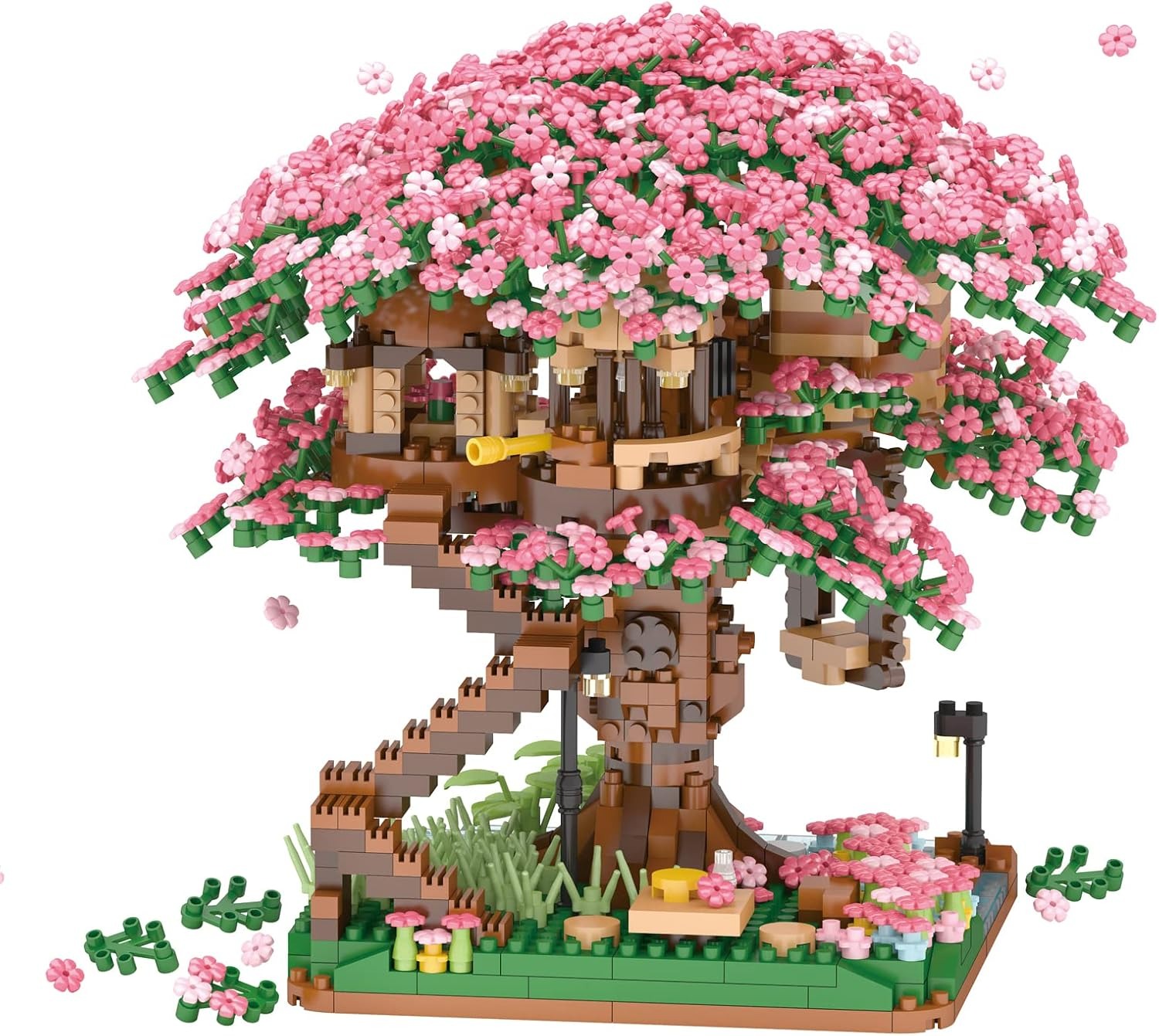 Hands-on And Thinking Skills: Great Buildings Start With The Stacking Of A Small Brick. Sakura Tree House Building Kit Exercises Children's Organizational And Logical Thinking Skills. First, Find Out The Modules And Quantities Applied From The Drawings, And Then Construct According To The Drawings. Make Sure The Model Forms Correctly.
