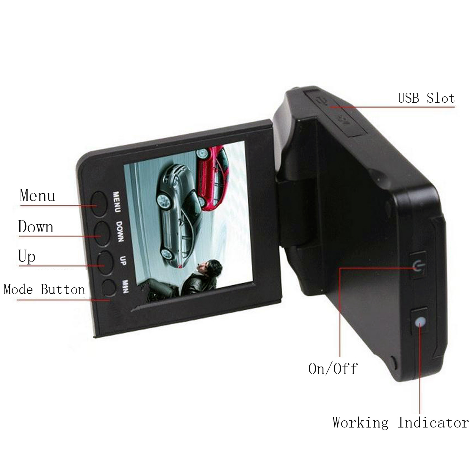 Item Features The HD DVR can capture high definition pictures and display it on its 2.5 inch TFT LCD Screen Recording automatically after the car's power up, this car camera will record and save the video files in the SD/MMC memory card With the camera holder/mount, you can fix it on the car dashboard or car windshield very easily The high quality video & audio can be timely and strong evidence to address accident and distinguish responsibility,it also a functional assistant of your private security For professional engaged in the work of police officers, journalists, detectives, lawyers, Taxi, etc. What's more, as a picture & video enthusiast, you will never let beautiful scenery pass you by Item specifics Model: H198 Car DVR with 6 IR LED LCD Screen : 2.5" 720x480,270° Whirl Video Resolution: 720P Video format: AVI Memorizer:SD/MMC card(from 1 GB up to 32GB) Interface: AV-Out,SD/MMC,USB2.0 Power Source:Built-in rechargeable battery or 12V/24V Car Charger Repeat Storage by Section:: 2/5/15 minutes Microphone: Built-in,can record sound Other function: Motion Detection,LED Display,Gravity Sensor,Real-time Recording,Night Vision and so on