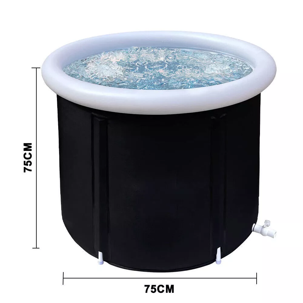 Product description: Portable:The lightweight, compact, easy to assemble design makes the Polar Bear Ice Bath easy to take anywhere.Protective lid:The lid provided with the ice bath is a great addition to maintain cleanliness when not in use.Large size:75cm diameter75cm heightCapacity approx. 300LEasy to clean:The ice bath is lined with an easy to clean, antibacterial material. It makes cleaning the ice bath quick and simple.Quick release tap:Let the water drain from the quick release tap when changing the water Removable legs:The removable legs make assembly/ disassembly easy. The 6 x support legs also provides stability when in use. Inflatable ring:The inflatable ring provides comfortable support when sitting in the ice bath. 3 x layers: Inner layer: PVC waterproof layer Middle layer: Insulation pearl cotton External Layer: Composite fabric Pacakge Includes: 1 x Portable ice bath & lid6 x removable support legs1 x removable drainage pipe & tap1 x pump1 x non-slip blanket1 x user manual1x thermometer