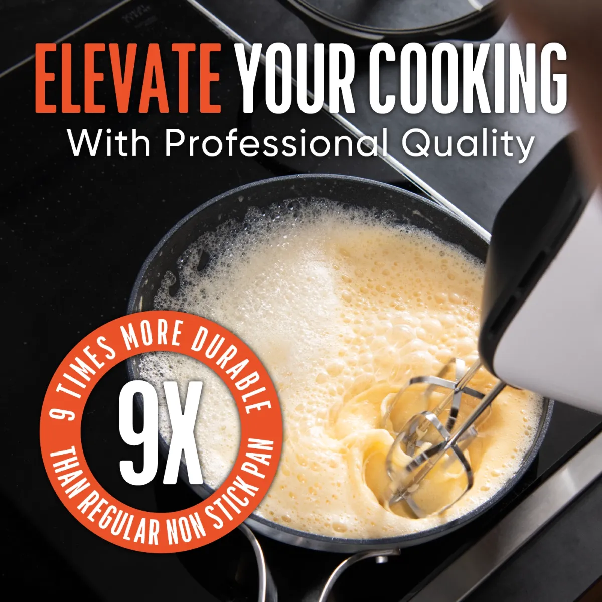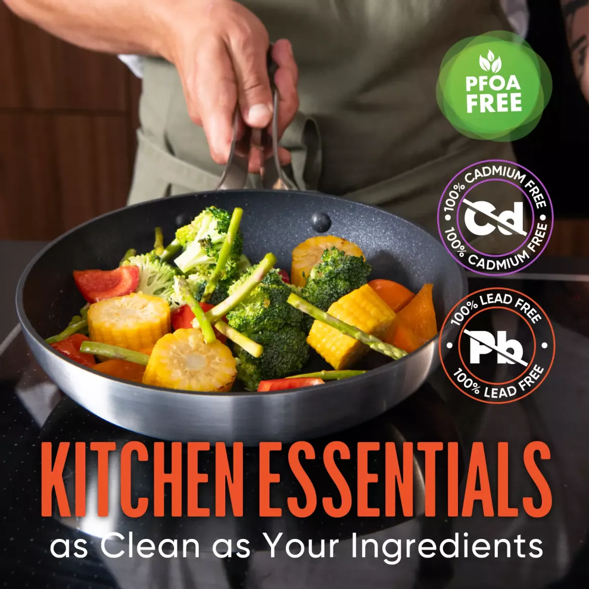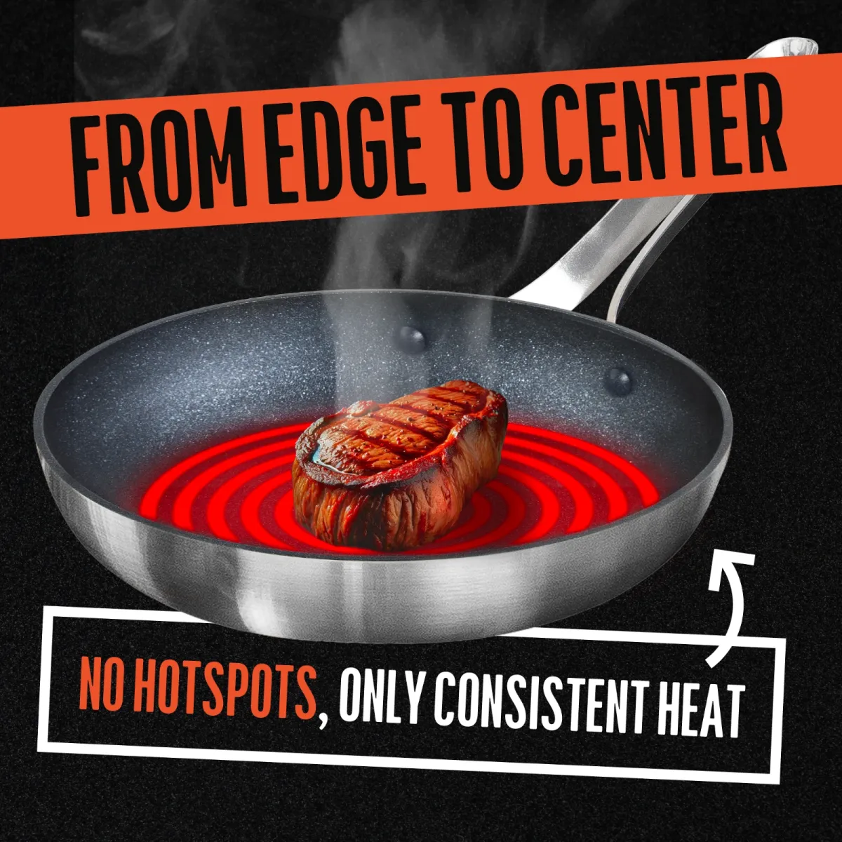 Healthy Cooking Ready | This ultra-slick surface lets you skip the oil, not the flavor, and create healthy meals with ease Suitable For All Stoves | To let our nonstick skillet meet the needs of more families, we specially designed the induction pan bottom. You can choose a gas stove, induction stove, electric stove, halogen stove, or ceramic stove at will Even Heating | Heavy-duty, tri-ply clad construction with aluminum core heats up evenly and quickly Cleans in Seconds | Thanks to the slick surface, most meals cooked in this Non Stick Pan can be completely cleaned in seconds Super Durable & Convenient | The cooking pans are equipped with exceptional durability and rust-proof features, guaranteeing long-lasting non-stick performance without the hassle of frequent maintenance. Enjoy the convenience of lighter pans compared to traditional cast iron skillets while maintaining perfect balance with the handle. Bid farewell to tilt and experience maximum stability and security during use
