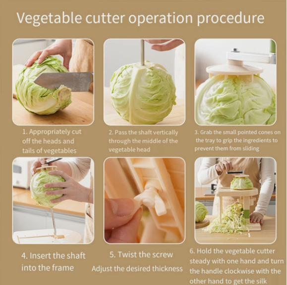 Description: This hand-crank vegetable cutter and shredder is the perfect kitchen tool for effortlessly slicing cabbage and shredding various vegetables. With a sturdy, manual design, it provides precision and control, allowing you to achieve consistent, uniform cuts without the need for electricity. Ideal for preparing fresh salads, coleslaw, or tempura vegetables, this versatile tool can handle different types of produce with ease. Its ergonomic handle and adjustable slicing width provide flexibility, making it an essential item for any kitchen. Built with durable materials, this shredder ensures long-lasting performance and reliability for your daily meal preparation tasks. Features: Manual Crank Design: No need for electricity, the hand-crank mechanism allows you to slice and shred vegetables smoothly and efficiently. Durable and Stable: Made from high-quality plastic with stainless steel blades, this tool is built to last and ensures consistent slicing results. Adjustable Slicing Width: Customize the thickness of your slices with an adjustable blade, perfect for various vegetable types and recipes. Ergonomic Handle: Designed for comfort, the handle provides a firm grip, allowing you to shred without straining your hands. Non-Slip Base: The shredder features a stable, non-slip base, ensuring safety and precision while in use. Easy to Clean: The cutter can be disassembled for easy rinsing or cleaning in the dishwasher, making it convenient to maintain. Specifications: Material: High-quality plastic with stainless steel blades Dimensions: 30 cm (11.81 inches) x 24 cm (9.45 inches) x 22 cm (8.66 inches) Weight: Lightweight, easy to move and handle Colour: White and green with stainless steel details Application: Suitable for slicing cabbage, shredding vegetables, and preparing salads, coleslaw, or tempura Package Includes: 1 x Hand-Crank Vegetable Cutter Shredder Note: The actual colour of the product may vary slightly due to lighting and monitor settings. Please allow a size difference of 1-3 cm due to manual measurements. This versatile and practical shredder is a must-have for any kitchen, making vegetable preparation faster and more efficient while ensuring perfectly sliced or shredded produce every time.