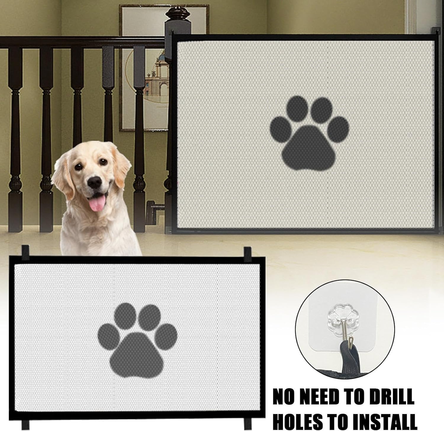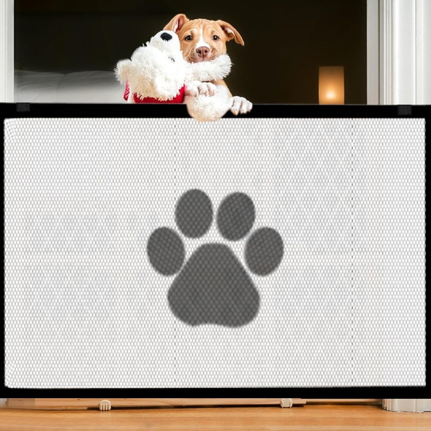 White 110*78cm Pet Mesh Gate - Telescopic Pet Fence,Folding Fence Net, Dog Gate