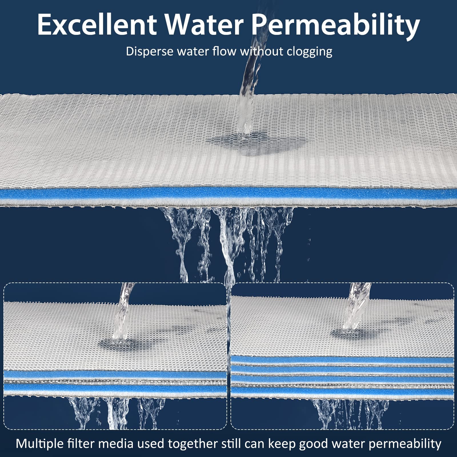 【Durable and Easy to Clean】: aquarium filter media is made of strong mesh cloth with dense structure. Unlike other common filter sponges that may deform or fluff easily after washing, our 8d filter sponge pad can withstand more than 200 washes without deformation. Using 8d filter pad, you no need to replace the filter pad frequently.