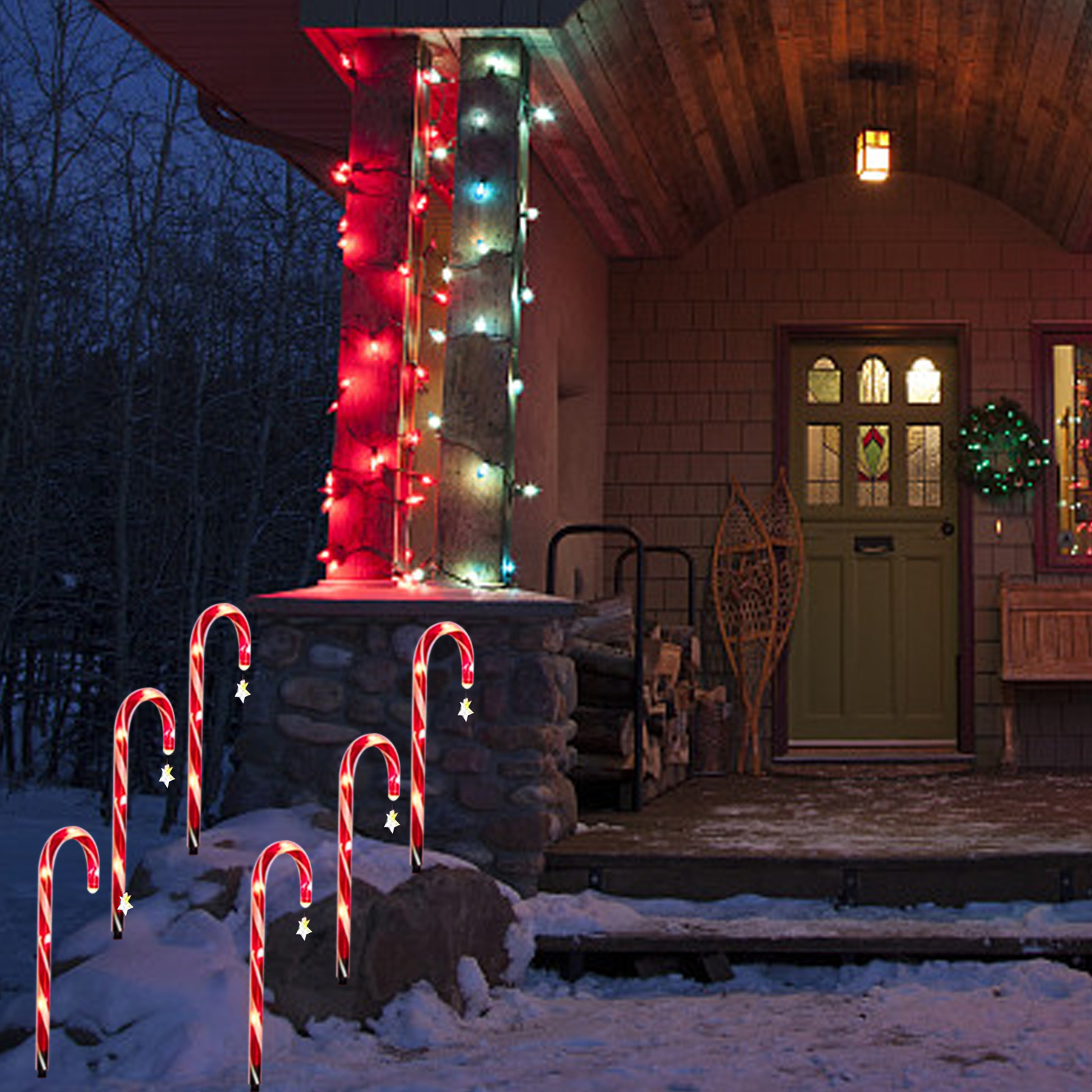 Inviting Festive Atmosphere: Add a touch of whimsy to your outdoor path decoration with these solar Christmas candy cane lights. Set of 8 candy cane star lights creates nostalgic holiday charm that will invite holiday cheer all season long.