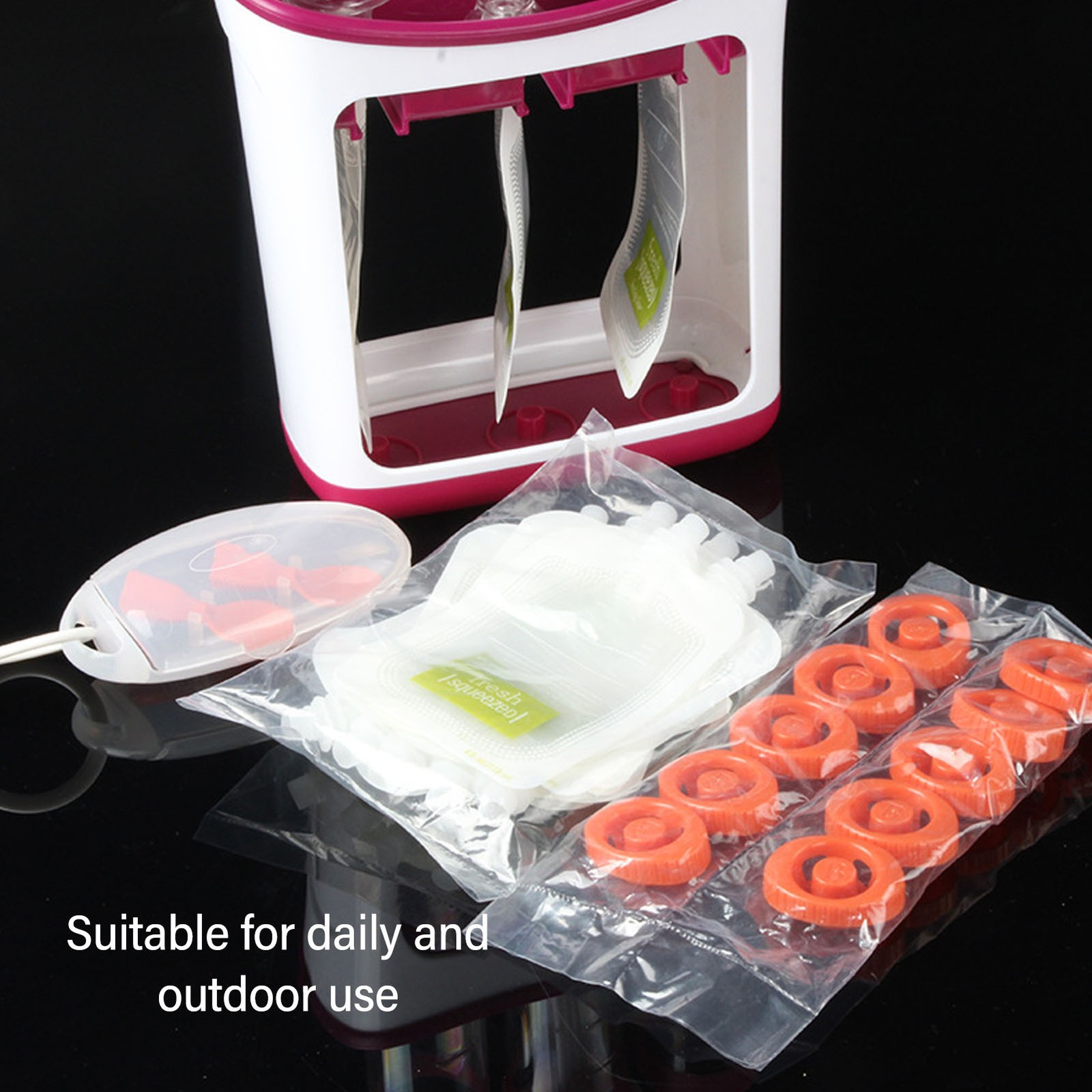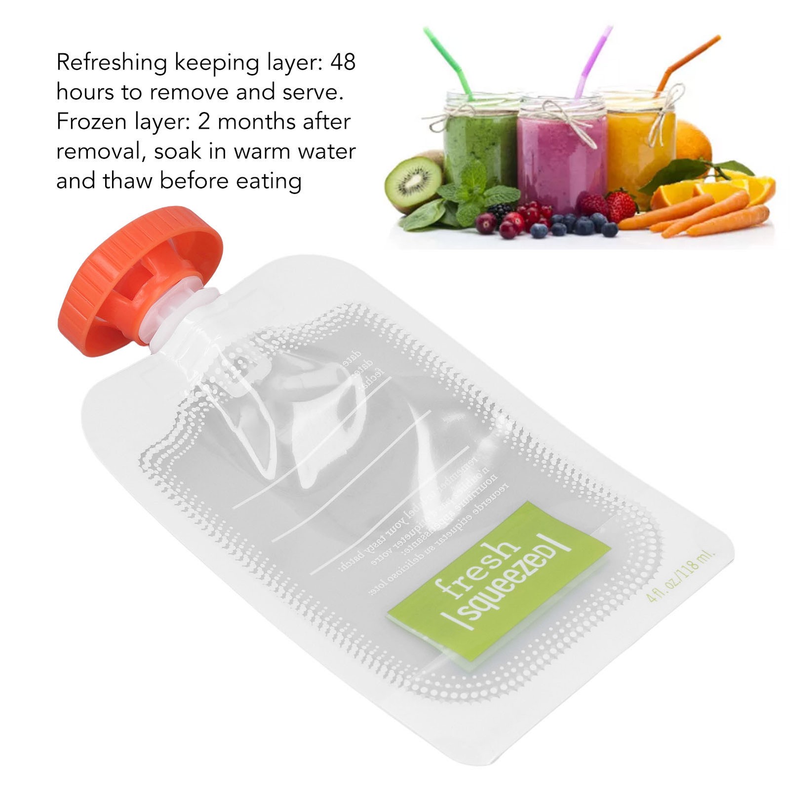 Easy to Use: Simply press gently to easily put fruit puree into the small bag, sealing tightly, effectively extend the shelf life of food, which can keep the food safe and refreshing.