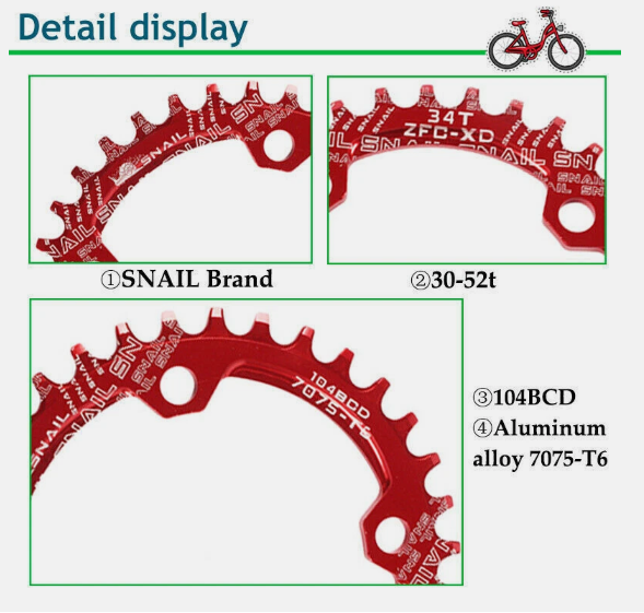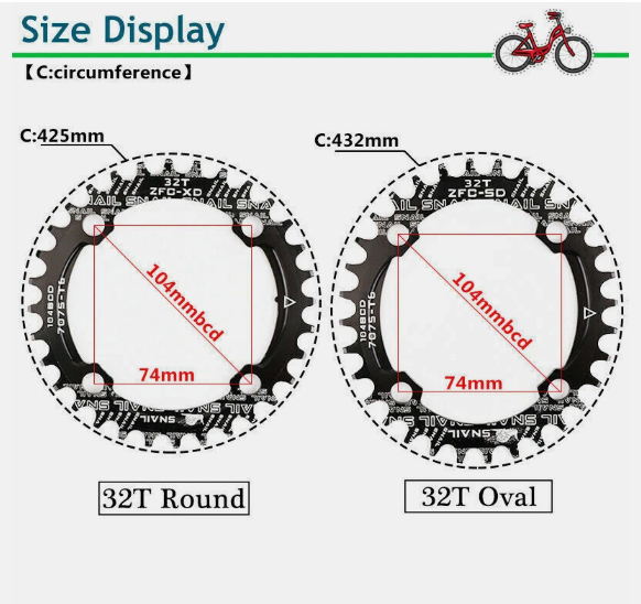 Gold Oval 32T MTB Mountain Bike Chain Ring 104bcd Narrow Wide Aluminum