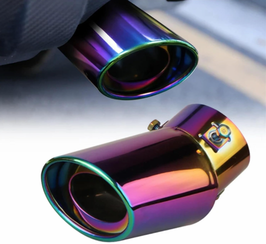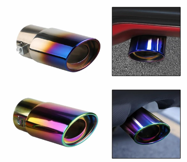 1PC 2.5" Burnt Blue Straight Inlet Exhaust Muffler Tip – Stainless Steel Chrome Rear Tail Throat