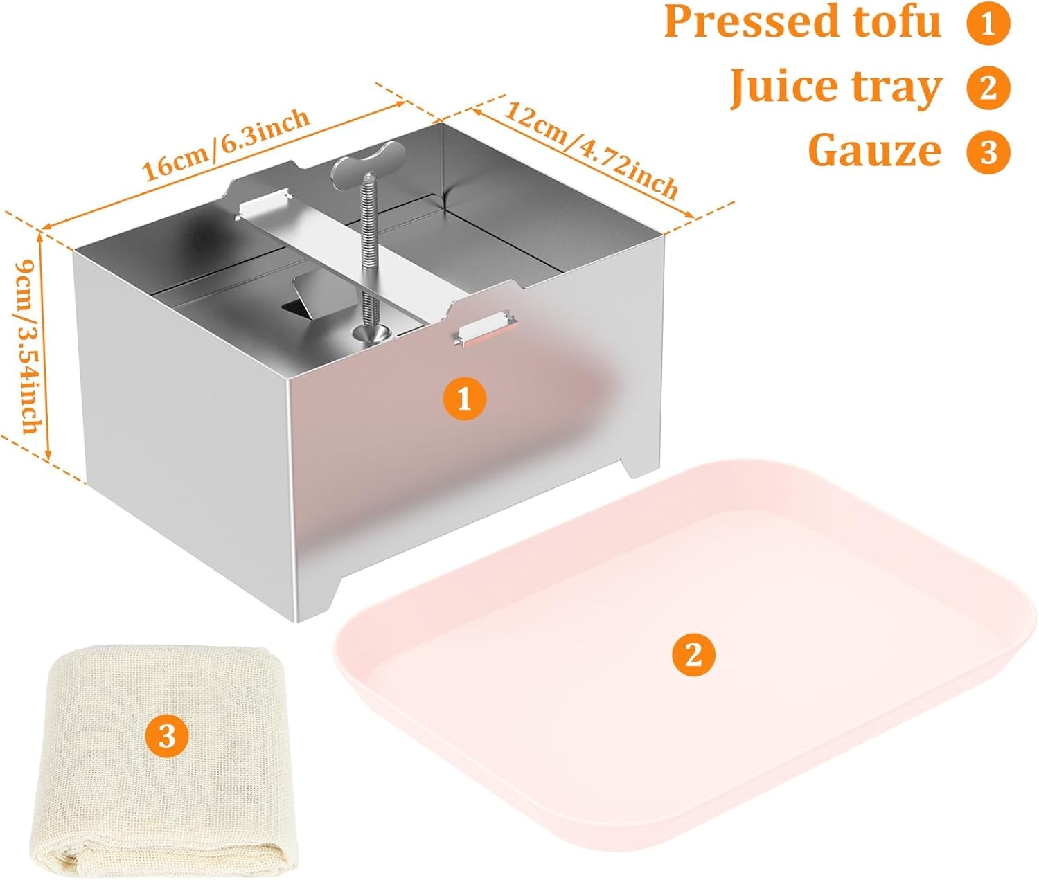 Large Tofu Press: 16cm long, 12cm wide, 9cm high.