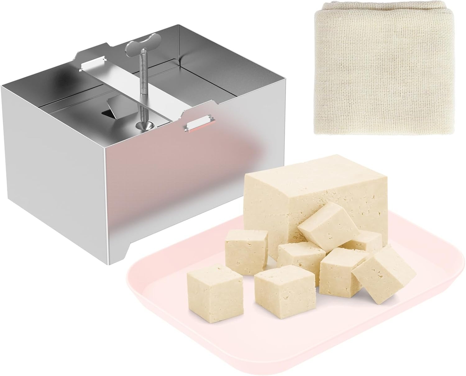 Stainless Steel Tofu Press 1000g Pressure Regulating with Bowl and Cheesecloth