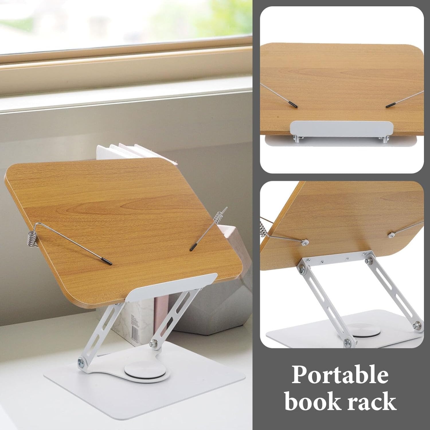 Wild range of application. it is suitable for reading book rack, tablet support, music stand etc. this reading stand has a 360° rotating turntable attached to the base. it has been carefully designed by professional designers after extensive market research.