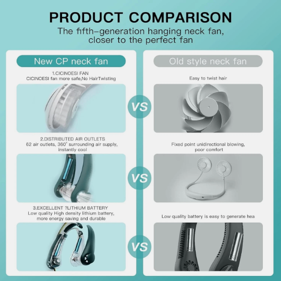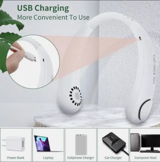 NO hair clip Neck fan: Bladeless neck fan No longer have to worry about your beautiful hair being caught in the fan blades or damaged; the elderly and children are also more secure to use neck fan for kids