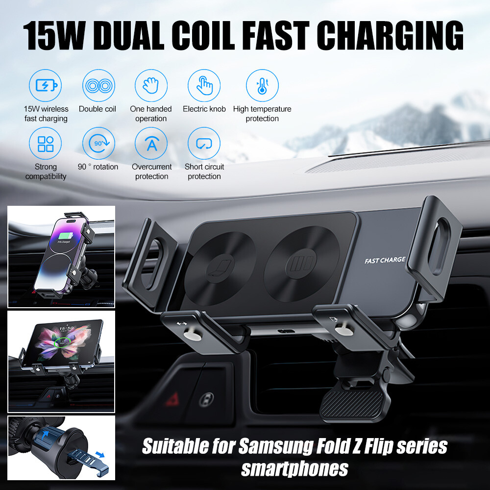 Wireless Car Charger Automatic Car Mount Holder For Samsung Galaxy Z Fold 5 6 4
