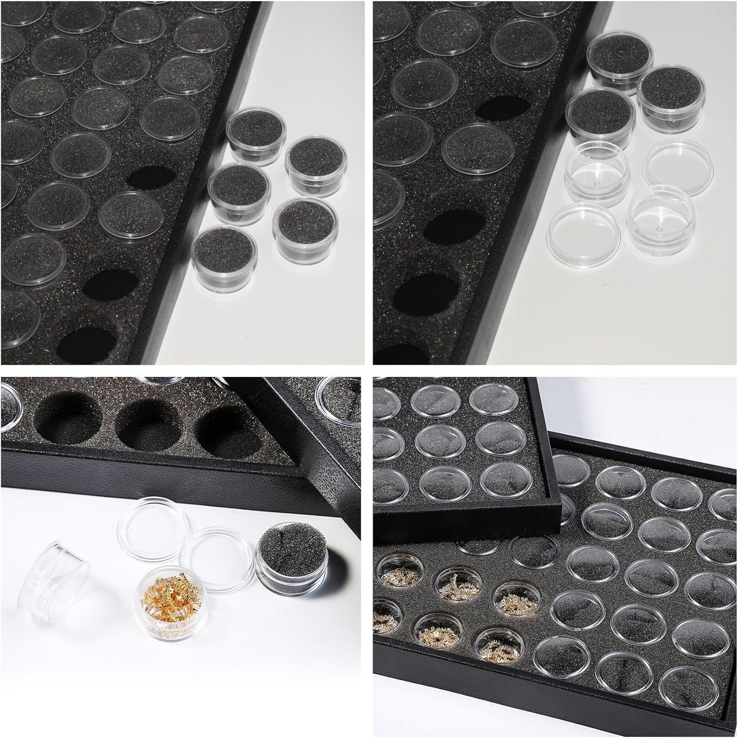 Easy to use: Each small treasure box has a lid to keep the items separate and orderly. The fully transparent jar also allows you to see the contents, making it easy to find things. The soft foam will not scratch your loose gems. You just need to open the lid to put your items into it for storage and sorting, easy to carry and decorate your home.