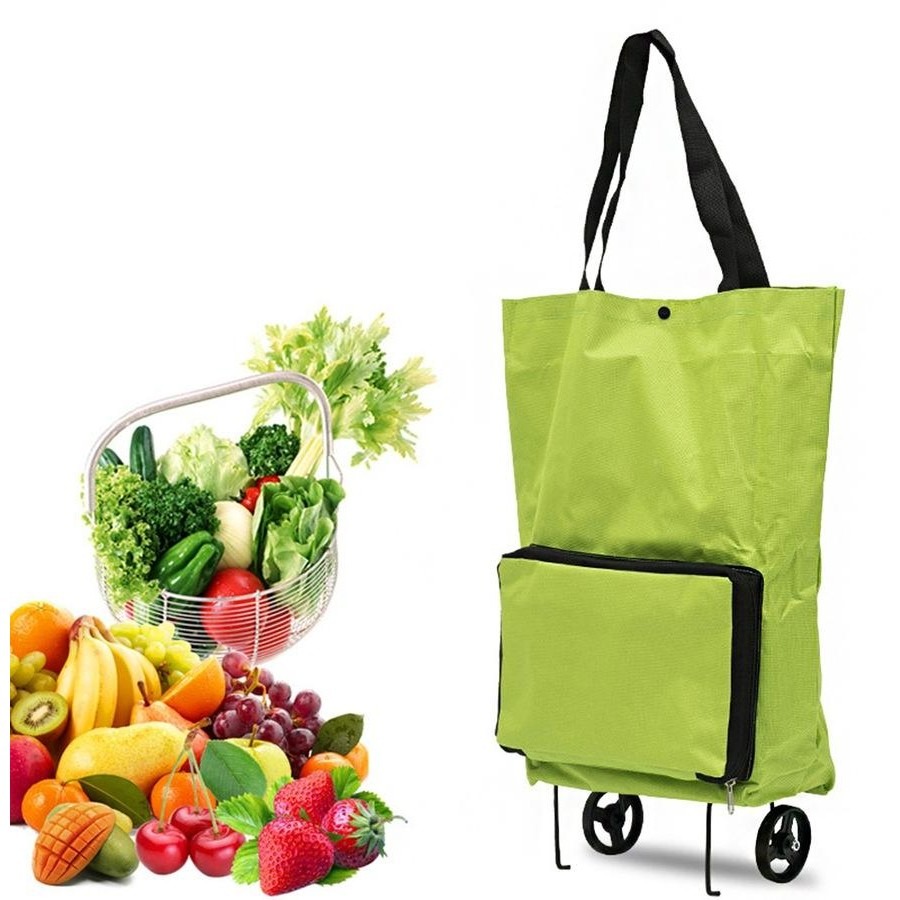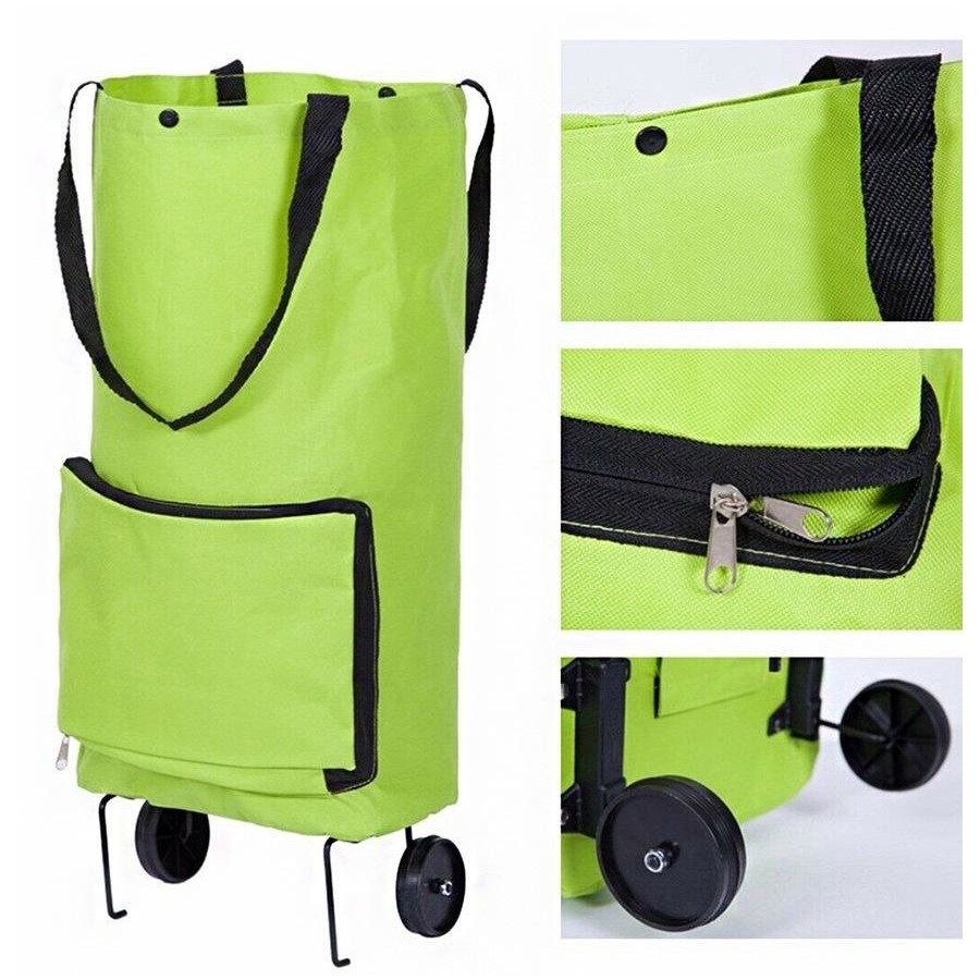 Portable Shopping Trolley Bag Foldable Cart Rolling Grocery Green Shopping Bag