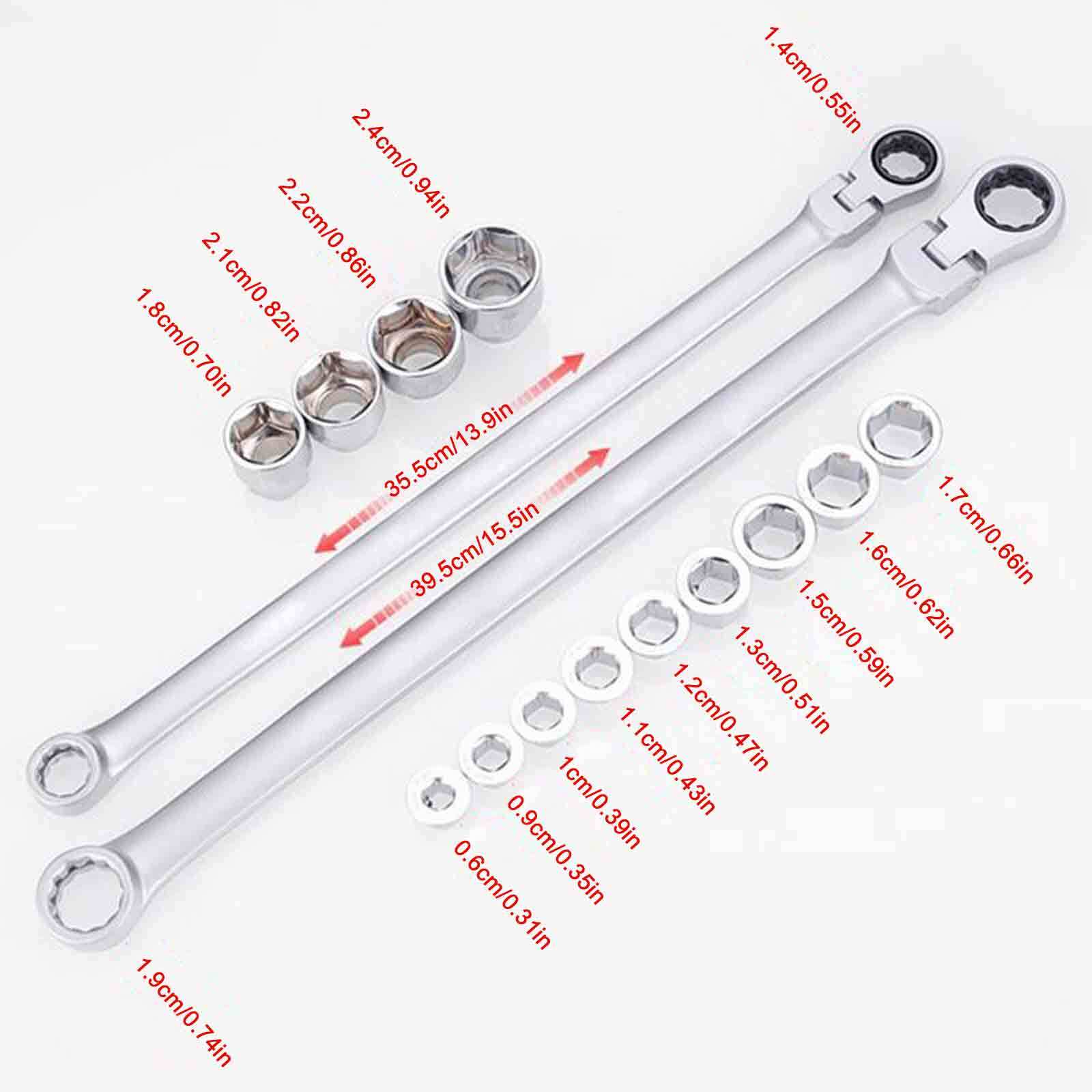 15Pcs Adjustable Ratchet Wrench Kit Upgraded Ratcheting Set with Hex Head Slee