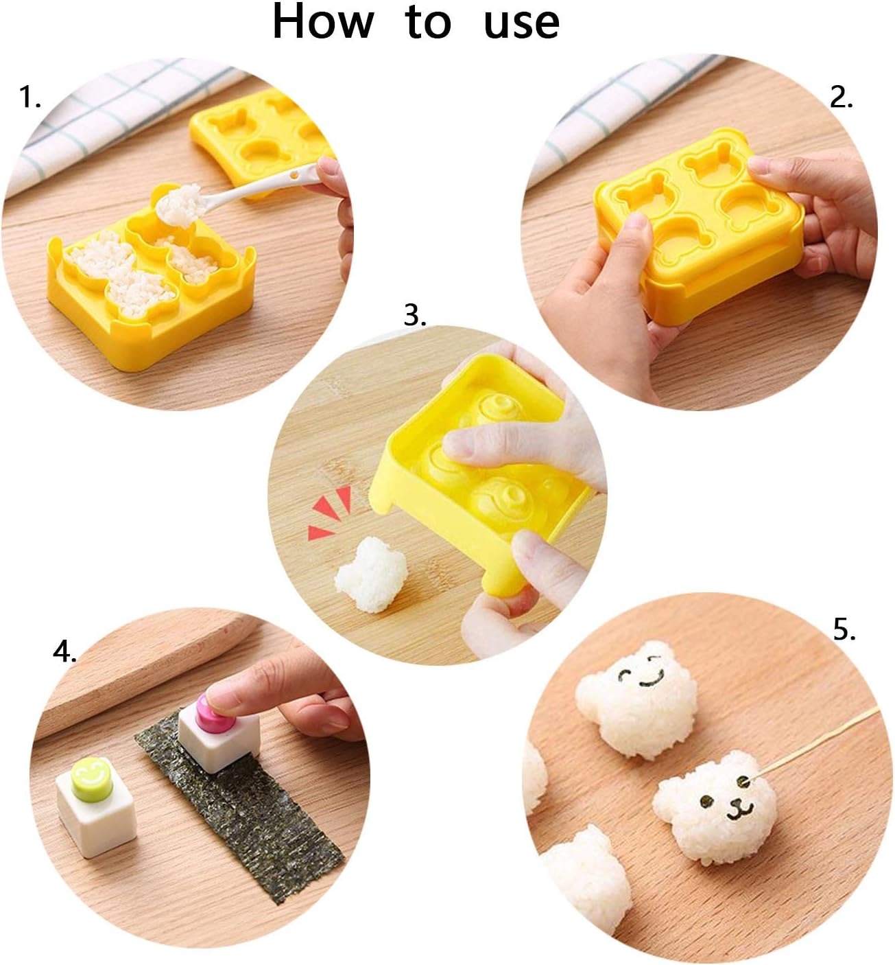Yellow Rice Ball Mold, DIY Cute Sushi Embossing Mold, Mini Bear Rice Ball Mold
