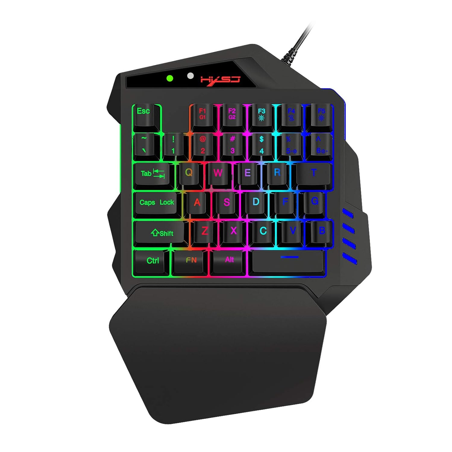 Features: Ergonomic hand rest design with unique curve surface, reduces the pressure on the wrist, offering more comfortability. Built-in LED multiple dynamic light effects, with rainbow colors, more cool at night, to r gaming atmosphere. 35 keys, traditional manual learning key position, no need to adapt to the layout, get started directly. Light effect mode, Fn keys are combined with different key combinations to create different light effects. The keyd supports running on mutiple platforms, replaent for PS3, PS4, XBOX 360, XBOX one, SWITCH,etc.Specification:nd:Product name: One-handed gaming keydModel: V500Product interface: USB 2.0Press the number of keys: 35 keysKey life: 20 million timesProduct line length: 1.5mFlash ROM: 32 bytesEEPROM: Built-in 2K bytesOperating voltage: VDD=3.3V-5.5VWorking t: 100mAAmbient temperature: -40℃~ 85℃Programming temperature: 0℃~ 85℃Supported platforms: PS3, PS4, XBOX 360, XBOX one, SWITCHItem size:28.7*18*3.8 cm / 11.3*7.09*1.5 in(L * W * H)Item weight: Approx.340g /11.99ozPackage size:29*20*4 cm / 11.42*7.87*1.57 in(L * W * H)Package weight:350g /12.35oz
