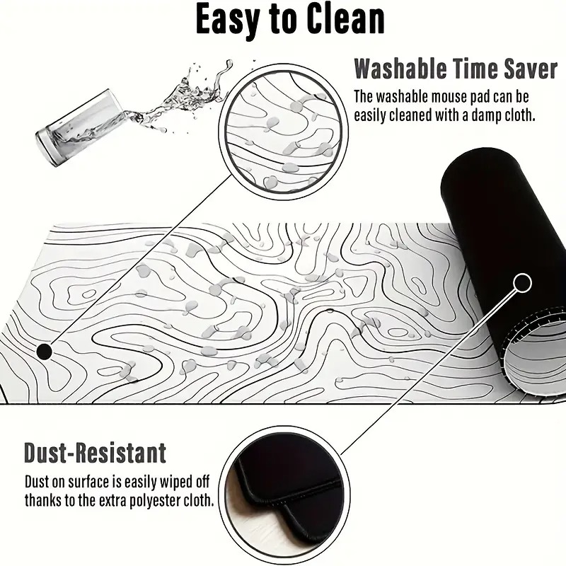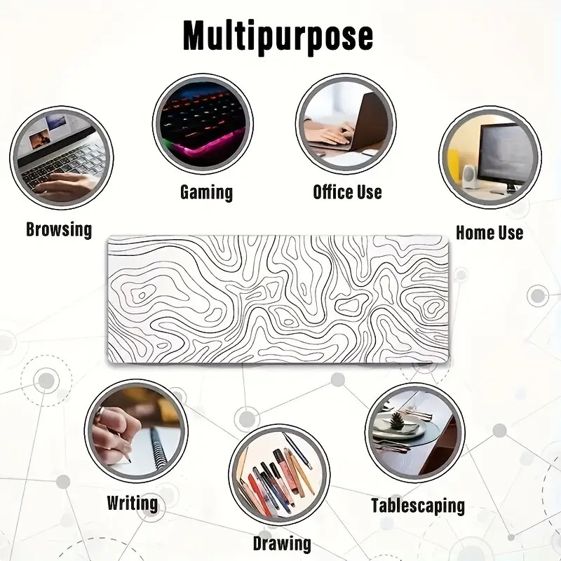 80x30cm Large White Abstract Terrain Line Mouse Pad - Non-Slip Rubber Desk Mat