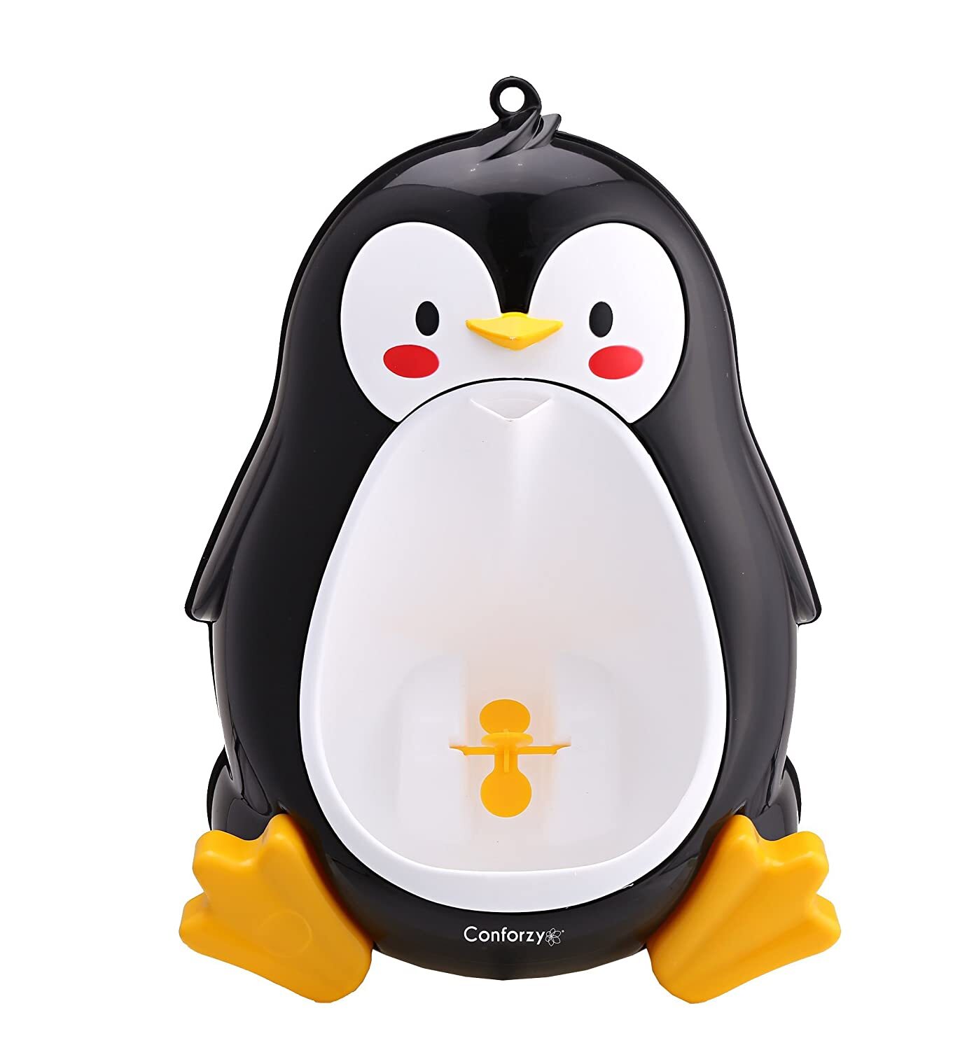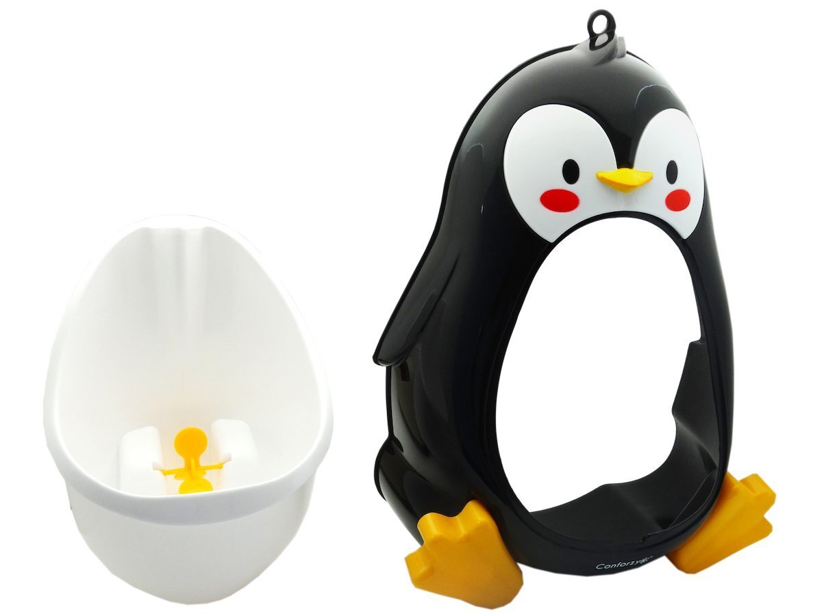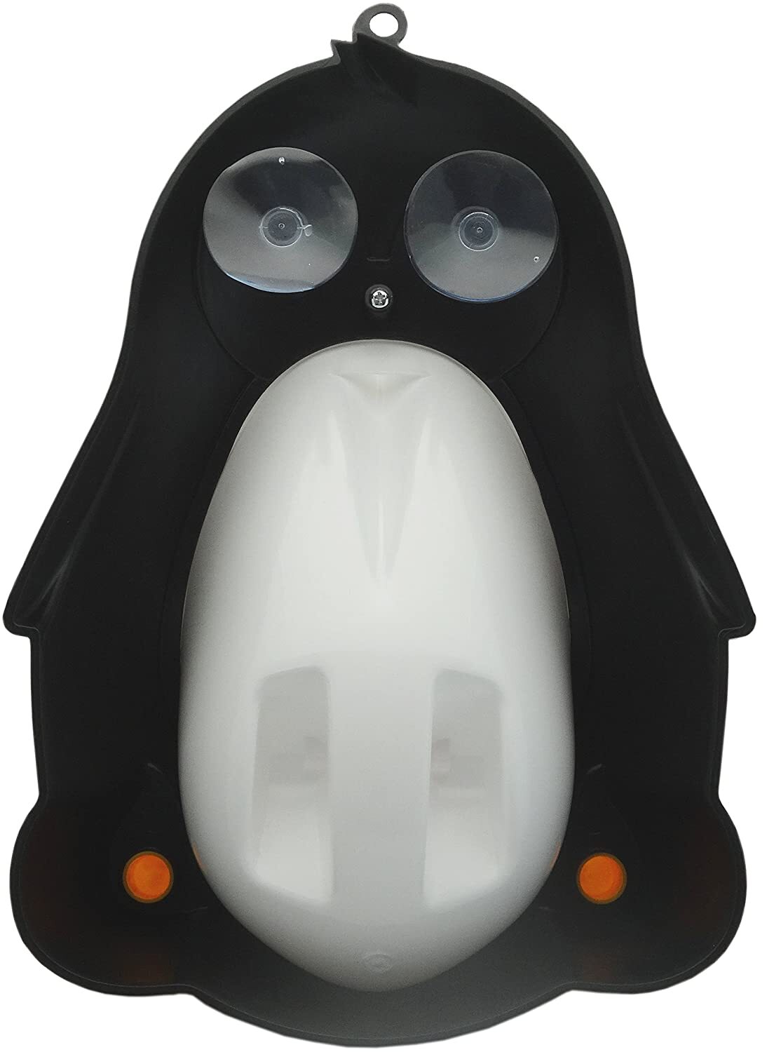 Description EASILY MOUNT AT ANY HEIGHT: The penguin potty training urinal can easily be mounted to the wall with the included suction cups (for tile surfaces) or mounting strips. The penguin mold includes a spot at the top for mounting with hook hardware (hook not included), if preferred for additional stability. PERFECT SIZE FOR TODDLERS AND YOUNG CHILDREN: Potty train your little boy more easily with this urinal, which is sized just for him! The small size is not overwhelming for young children, but still offers the space they will need. The wall-mount option allows you to easily adjust the height of the potty training urinal to the best height for your child. BRIGHT COLORS AND ENGAGING DESIGN: The potty training urinal is designed with bright colors to appeal to young children and keep them interested in potty training. EASY CLEANING WITH REMOVALBE BOWL: The 2-piece potty training urinal includes a removable middle bowl that detaches from the frame for easier cleaning. The bowl is easy to lift out of the frame, but fits snugly so you don’t need to worry about any unnecessary spills. SPINNING TARGET HELPS TEACH CHILDREN TO AIM: The potty training frog urinal contains a windmill style spinner at the bottom of the bowl that helps teach children to aim. Spinner is ideal for keeping children ages 1-6 engaged while learning to use the urinal.