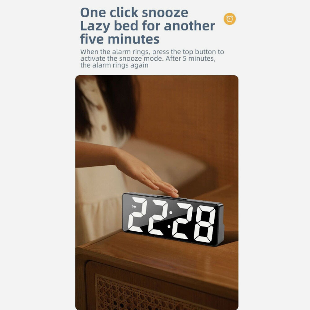Electric Digital Alarm Clock LED Display Date Temperature Non Ticking Bedside
