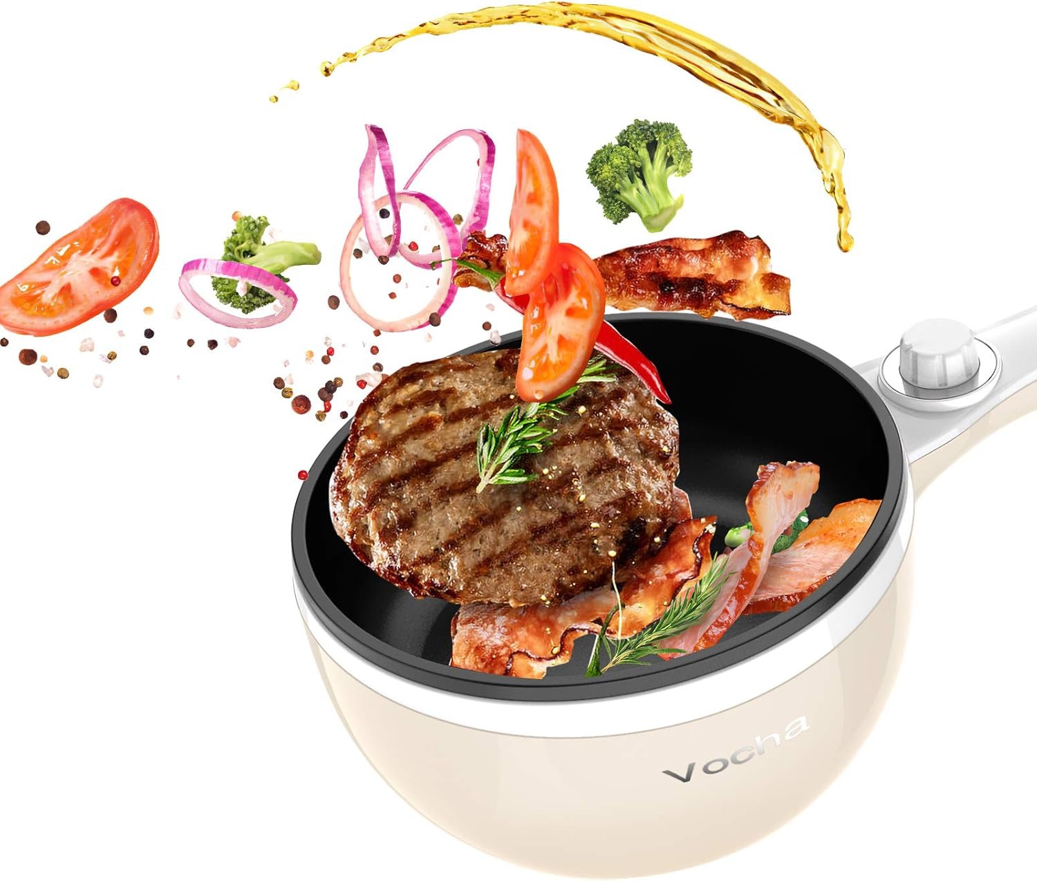 【Multi-Function Electric Hot Pot】Electric Cooker can be used as an electric saucepan, electric skillets, non-stick frying pan, noodles cooker. Use this electric pot to sauté steak, lamb chops, chicken, fried rice, pasta, cook porridge, soup, eggs, hot pot.