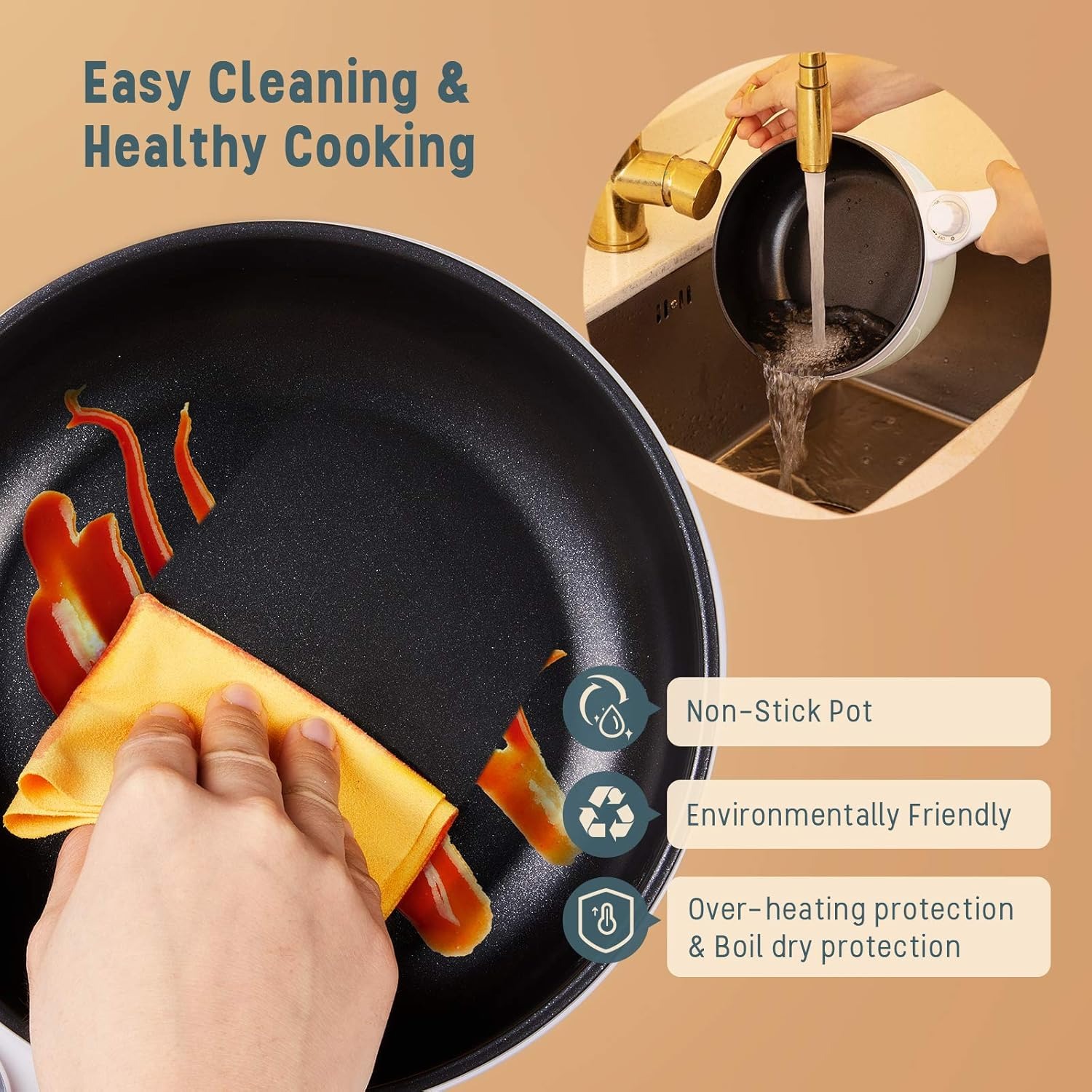 【Healthy Cooking & Easy to Clean】The electric hot pot has a wonderful non-stick surface which is made of food grade material, environmentally friendly. Easy to use and clean, perfect for beginners in kitchen.