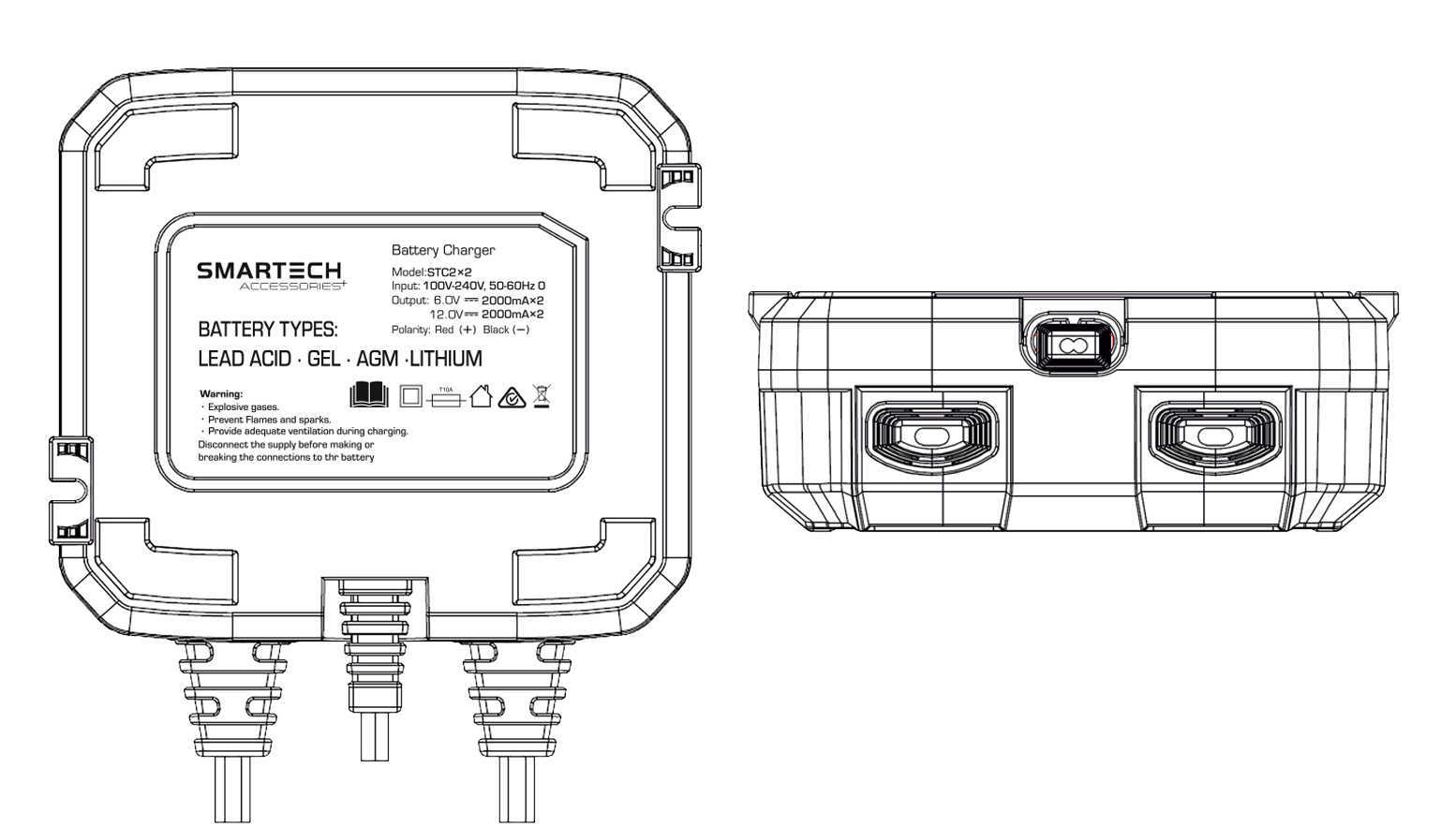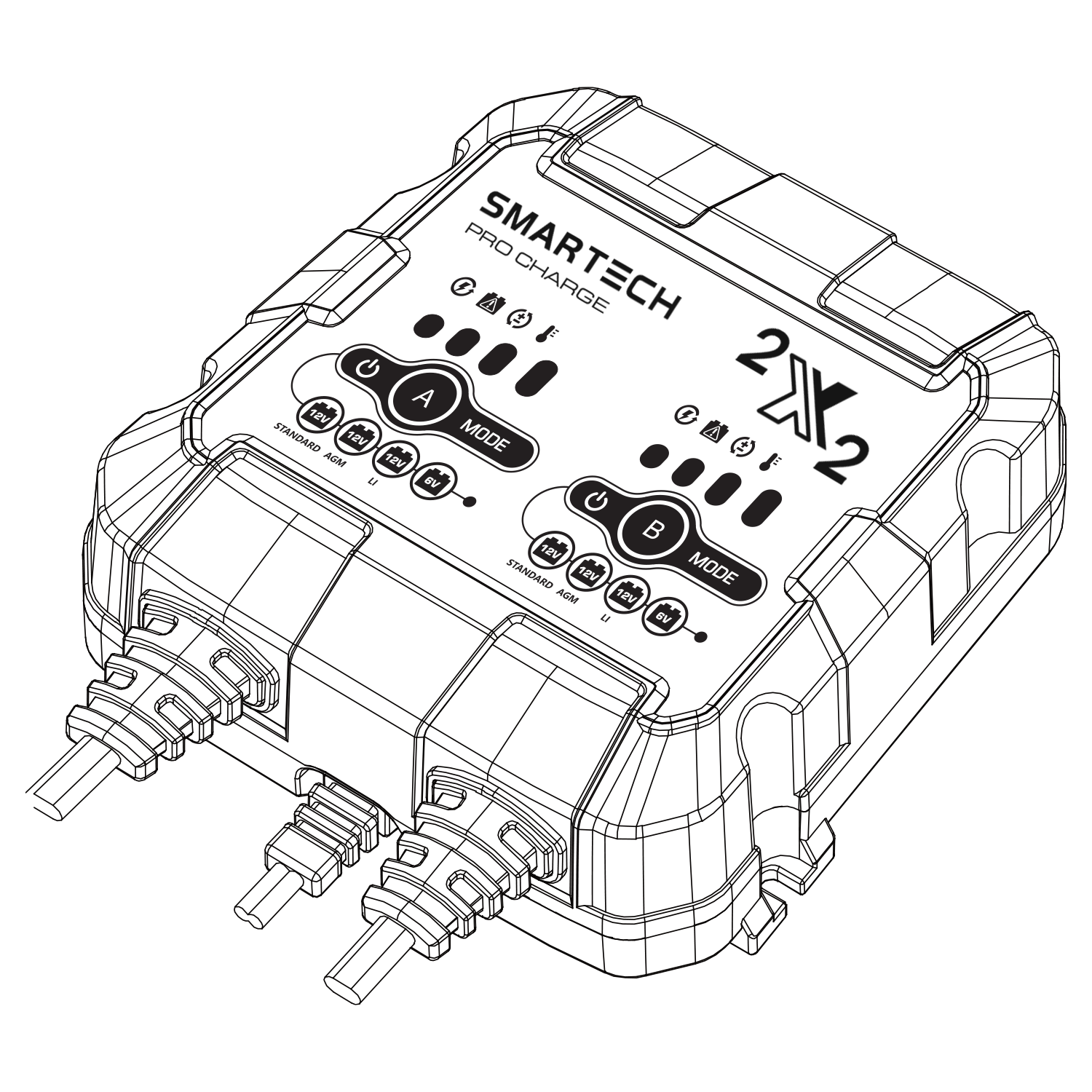 Introducing the STC2X2, a state-of-the-art charger that stands out as one of our most powerful and efficient models to date. This versatile 6-volt and 12-volt two-bank charger serves multiple functions: it acts as a battery maintainer, trickle charger, and battery desulfator. With a rating of 4 amps (2 amps per bank), it is compatible with a wide range of lead-acid and lithium-ion batteries, including flooded, gel, AGM, marine, and deep-cycle batteries. Experience unparalleled performance and efficiency with the STC2X2.