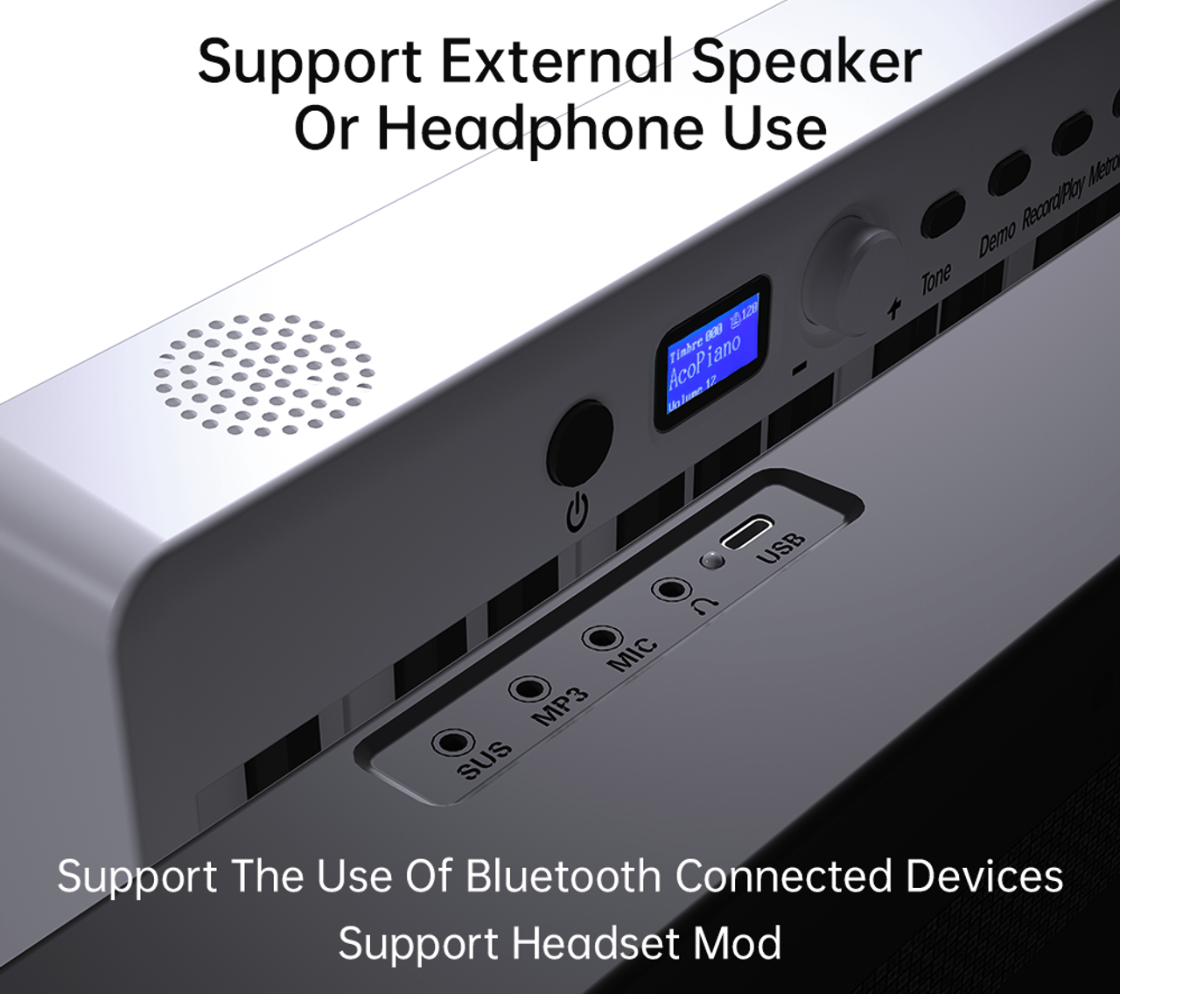 Built-in dual HiFi stereo speakers delivering rich, realistic piano sound