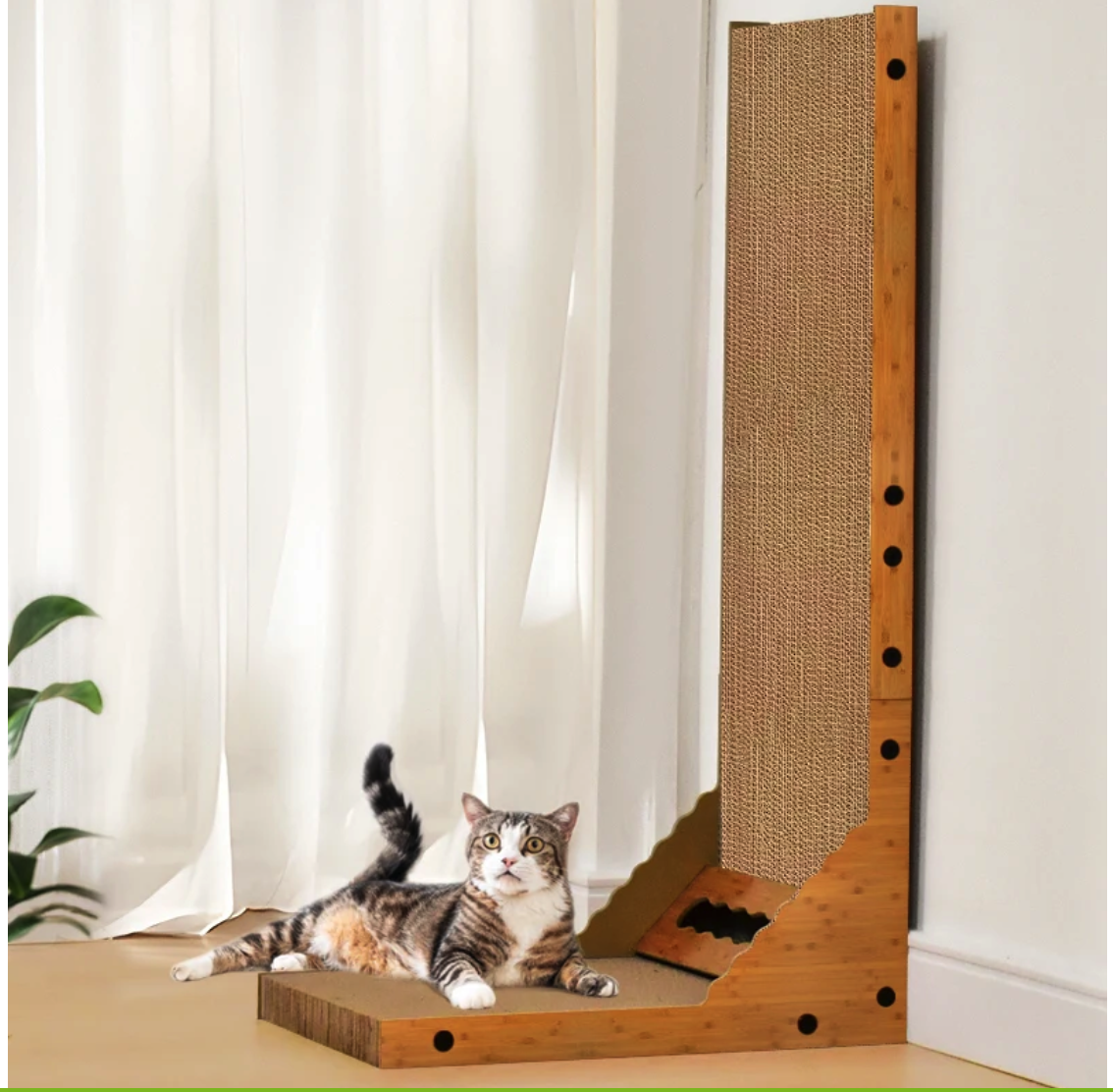 Built from durable, eco-friendly corrugated cardboard in a sleek wooden frame, it keeps claws healthy while protecting your furniture.