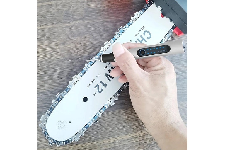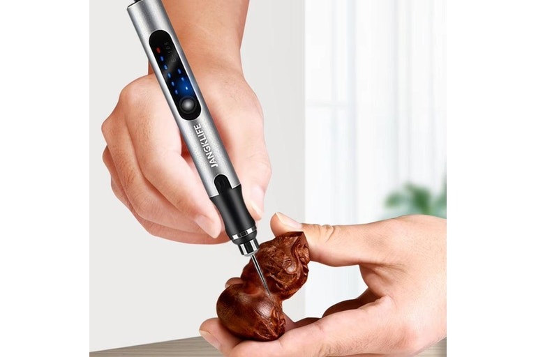 Equipped with a rechargeable 5V lithium battery, the tool is conveniently powered through a compatible USB connector, making charging easy and accessible. It offers three rotation speeds (5000, 10000, and 15000 rpm), adjustable with a single button, to suit different project needs.