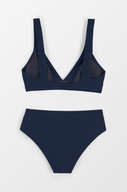 Step into summer with this stylish Dark Navy V-Neck Bikini Set in size M. Featuring a flattering longline bralette and classic high-waist bottoms, this set offers both comfort and elegance for beach days, poolside lounging, or resort wear. Features: • V-neck longline bralette for enhanced support and style • High-waist bikini bottoms for a flattering silhouette • Soft, stretchable fabric for all-day comfort • Elegant dark navy color • Ideal for swimming, sunbathing, or vacation wear Specifications: • Size: M • Color: Dark Navy • Style: Two-piece bikini set • Material: Polyester blend (soft and quick-drying) Package Includes: • 1 × V-Neck Bralette Top • 1 × High Waist Bikini Bottom