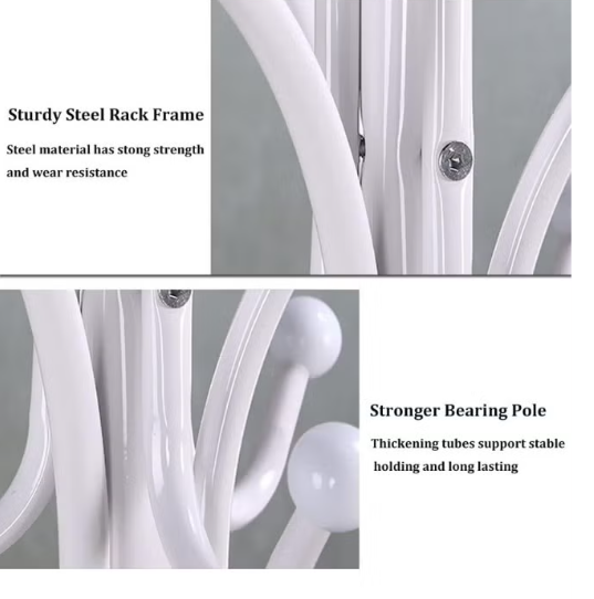 Product Description Durable Metal Construction: Sturdy metal frame with heavy chrome plating for rust resistance and high load-bearing capacity; round tubes prevent damage to clothes. Easy Assembly: Simple structure assembles quickly without tools. Elegant Design: Fits seamlessly with any home decor; innovative, stable frame doubles as a stylish living room statement piece. Specifications Base Material: MetalHeight: 179 cm Model Number: 308 Pieces: 1 Weight: 6 kg Length: 40 cm Width: 40 cm