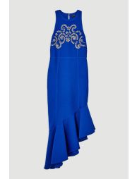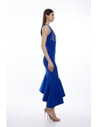 Seraphina Royal Blue Beaded Midi Dress – Sleeveless Mermaid High-Low Ruffle Dres