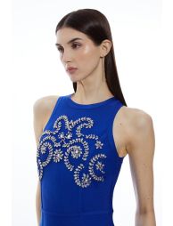 Delicate beading across the bust catches the light with every move, while the open-back detail adds a touch of alluring charm. Made from a soft cotton-look fabric, this midaxi-length dress ensures comfort without compromising style, making it an ideal choice for weddings, parties, or special occasions.
