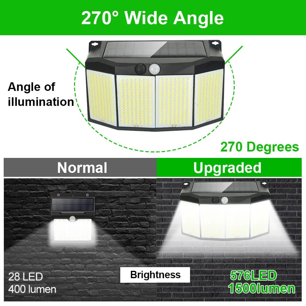576 LED Outdoor Solar Power Lights Motion Sensor 3 Modes Waterproof Flood Lights