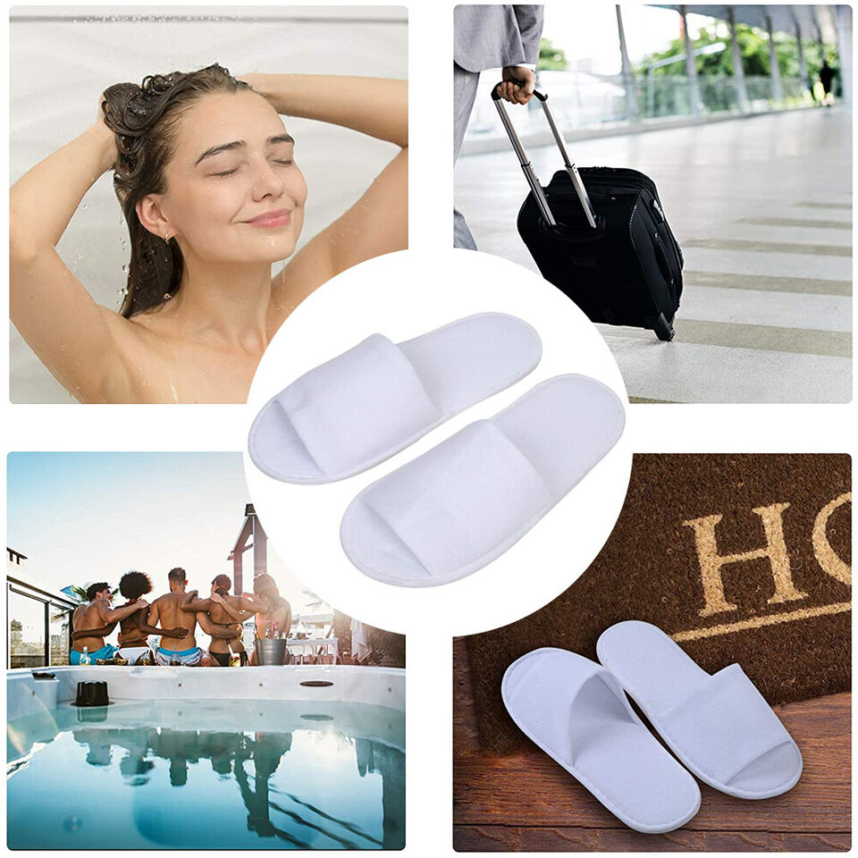 Features: 1. 100% Brand new and high quality 2. The disposable slippers are mainly adopted quality Terry fabric material. Sanitary and comfortable to wear. 3. Environmental friendly materials that is healthy and safe for human skin touching directly.Light weight, they can be easy to carry for travel use. Disposable style, you can throw away after use. No carry burden in the travel. 4. Nice slippers for the guest to come to your home. No need wash, beat choice for the people who don't like to do much housework. 5. The disposable slippers is great for household, hotel, SPA, travel. Specification: Gender: Unisex Type: Slippers Toe Shape: Round Material: Terry Fabric Color: White Size: 27x10.5cm/10.63x10.13" inch Design: Open Toe Slippers with 3mm non slip sole