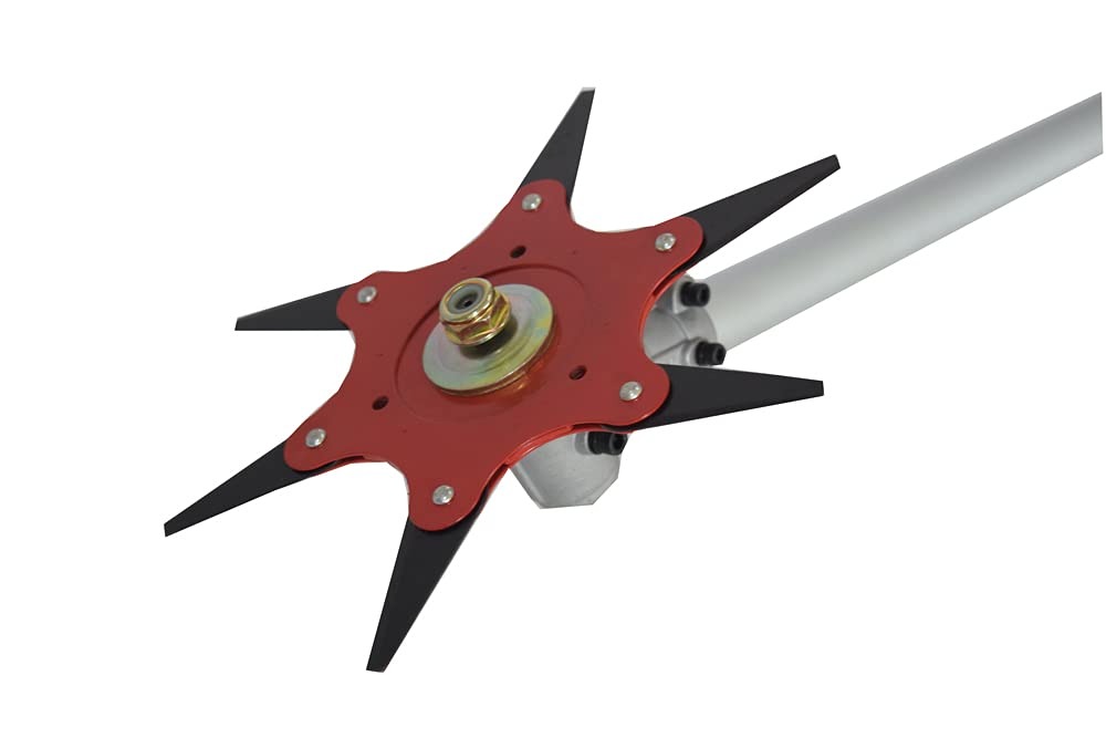Lawn mower accessories weeder universal six-leaf cyclone alloy blade.Hi-Tech Agro Brush Cutter Attachment Steel Trimmer Heads 6 Pointing Heads Made with Strong Carbon Steel All-Purpose Heavy-Duty Blade: Agriculture, Garden Crop, Harvesting, and Grass Cutting High-quality Product with Powder Coating, Weather Resistant Product Dimensions LxWxH: 30.5 x 9 x 0.2 Centimeters, Product Color: Red