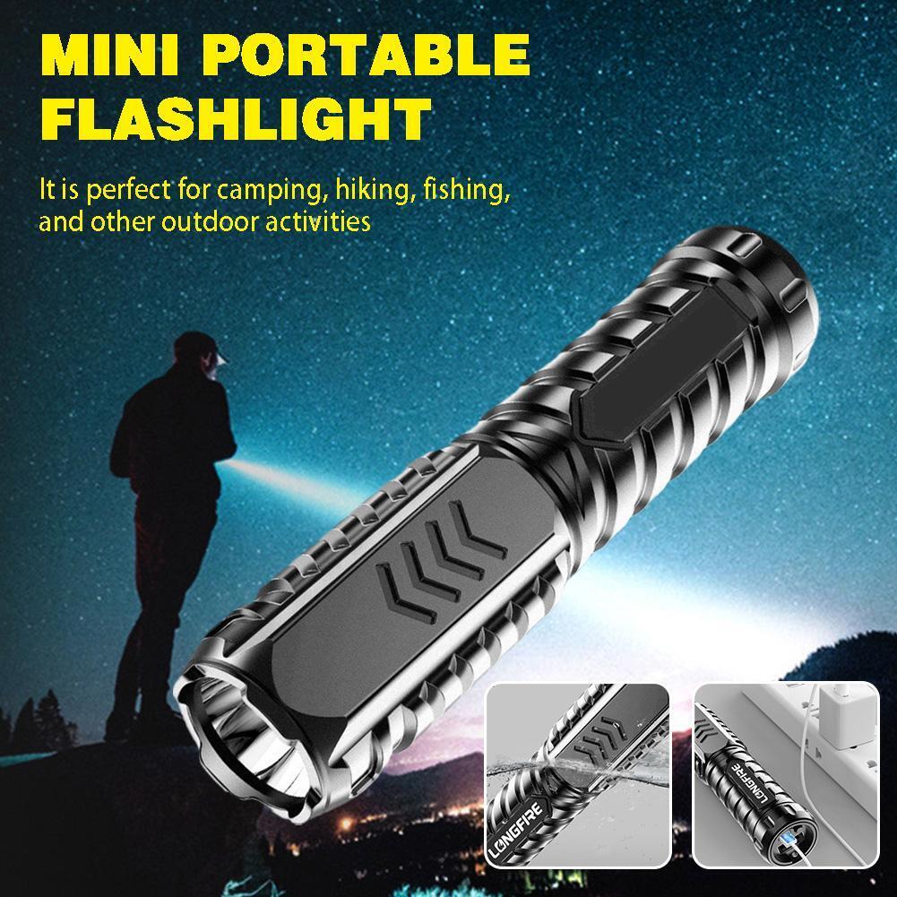DescriptionProduct name:Mini Portable FlashlightProduct size: 11.7*2.5cm/4.6*0.98inProduct color: As shown in the figureProduct material: ABSProduct features:1.High brightness: The LED tactical flashlight is ultra-bright, providing ample illumination for use both indoors and outdoors.2.USB rechargeable: With its convenient USB charging feature, you can easily recharge the flashlight on-the-go, making it a great choice for outdoor activities or emergency situations.3.Long-range beam: The flashlight offers a far-reaching beam, allowing you to see a great distance ahead of you even in the darkest of conditions.4.Compact and portable: Its small size and durable construction make it easy to carry with you wherever you go. It is perfect for camping, hiking, fishing, and other outdoor activities.5.Multi-functional: The flashlight comes with a range of features and modes, including strobe,and high/low beam modes, making it suitable for a range of tasks and environments.Precautions:1. As we all know , the different computers display colors differently, the color of the actual item may vary slightly from the following images.2. If you feel difficult to choose the size, you can feel free to contact mewe will give you some suggestion, but it is for you reference only.