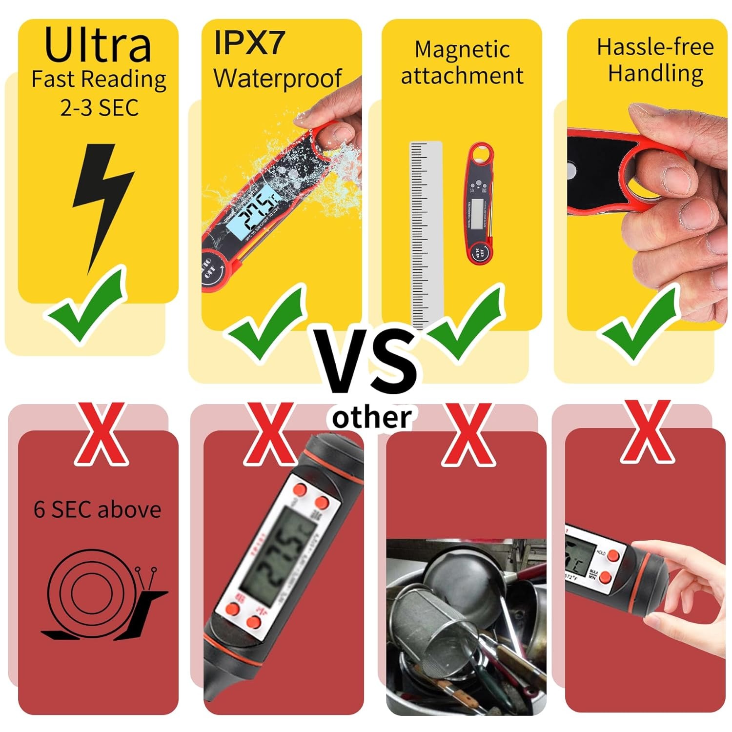 Instant Read Meat Thermometer Digital, Fast Accurate Waterproof Food Thermometer