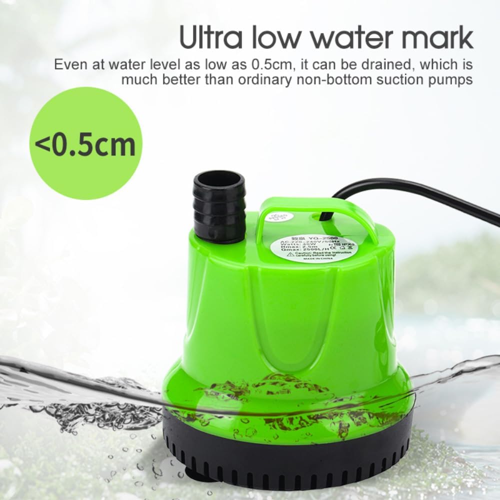 Efficient submersible pump perfect for aquariums, fish tanks, ponds, hydroponics, and water features. The bottom suction design pumps water down to 1cm, ideal for fast drainage.