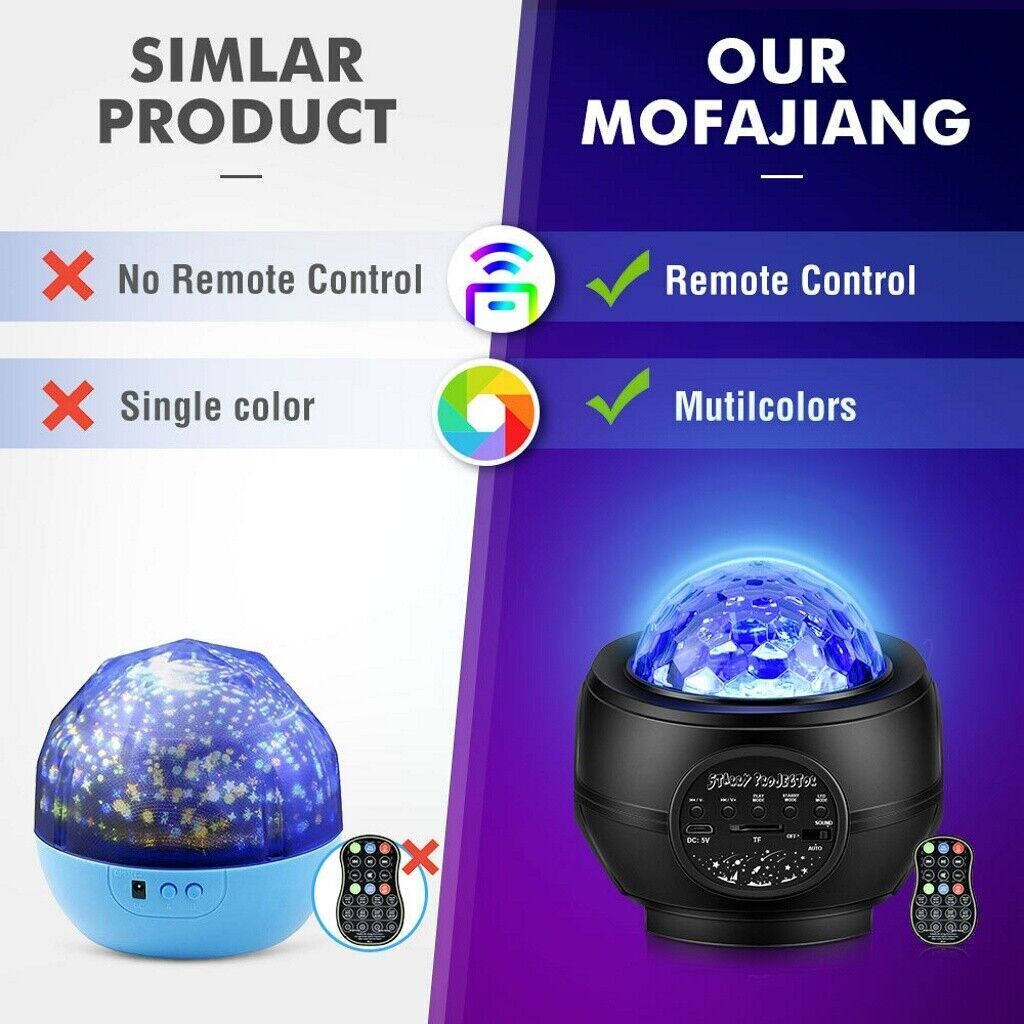 Simulations of Milky Galaxy - Inspired by barred spiral galaxy in milky way, breathtaking vistas of the spiral in different forms with the clouds moving and a sky full of stars Immersed in Alternate Universe - This Starry Light Projector shines a universe of moving stars against a rotating colored nebula cloud, it can be static or moving, fast or slow, bright or dark to create an otherworldly visual experience Coloring Your Galaxy - You are more free to color your galaxy in single color or mixed color like a painter with the palettes on mobile APP, creating incredible ambience to your room Easy to Control - The starlight projector can be controlled by mobile App or remote. You can easily change the mode to customize your needs at night through mobile app when laying on the bed or slump on the couch Ideal for Your Home - Turn your room into a beautiful milky way providing a view of the night sky. Enjoy having dinner under the stars or a long soak in a hot tub, creating a soothing relaxing atmosphere to achieve a sense for physical and mental relaxing