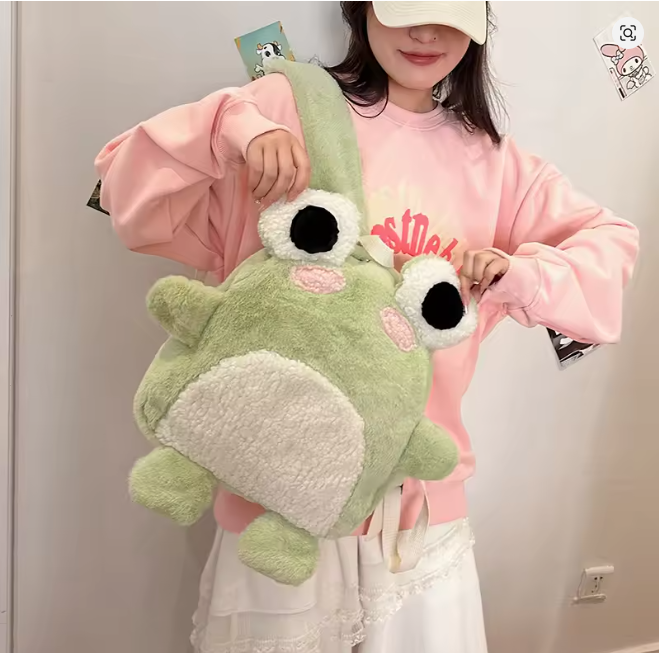 Women Cute plush frog backpack 2024 girl funny cartoon school bag small shoulder bag colour: Big
