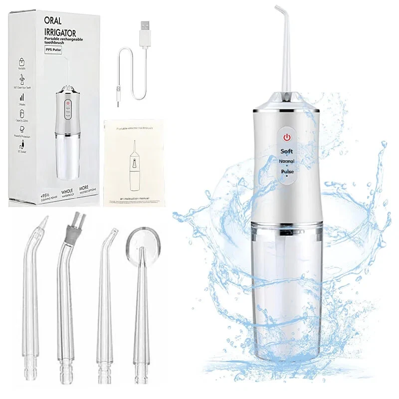 2.The oral irrigator is 3 modes available including soft, strong and pulse mode. By using it 2-3 times a day, you can prevent tooth decay/gingival atrophy/bleeding gums/dental calculus, etc.