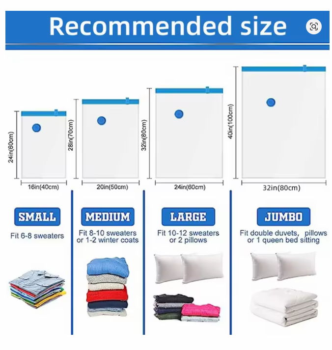 8PCS Vacuum Bag and Pump Cover for Clothes Storing Large Plastic Compression Empty Bag Travel Accessories Storage Container Size: 40x60cm Color: 8 pack with pump