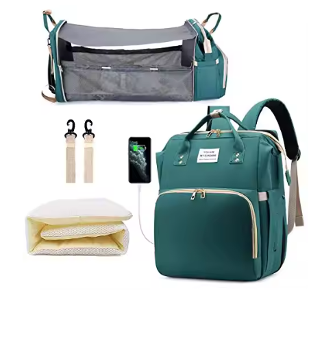 TYPE 3 green 3 In 1 Diaper Bag Backpack Foldable Baby Bed Waterproof Travel Bag